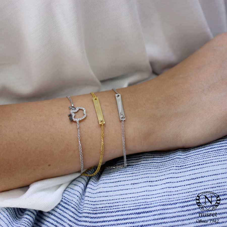 Bileklik 925 ayar gümüşten imal edilmiştir. Taşlı bileklik 21,5 cm uzunluğundadır. Elma figürü 1,3 cm boyutlarındadır. Bileklik çift zincirli ve zirkon taşlıdır. Gümüş bileklik 1,82 gram ağırlığındadır.