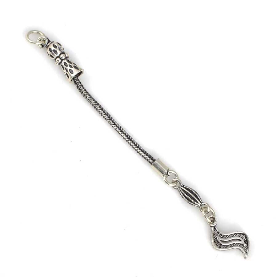 925 ayar gümüş olarak üretilmiştir. Gümüş püskül 8,5 cm uzunluğundadır. Püskül ucunda es figürü vardır. Ağırlığı 2,88 gramdır.