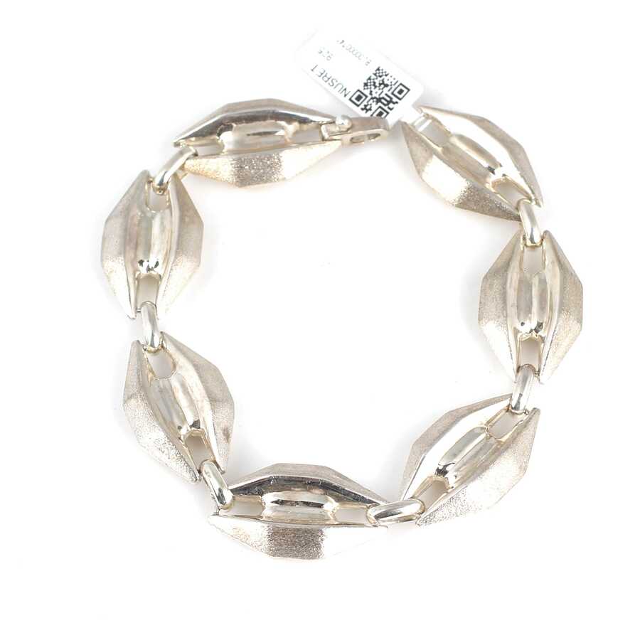 Bileklik 925 ayar gümüşten imal edilmiştir. Mekik şeklindeki bileklik 1,6 cm enindedir. Fantezi bileklik 21,5 cm uzunluğundadır. Bileklik taşsızdır. Gümüş bileklik 27,46 gram ağırlığındadır.