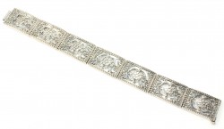 925 Ayar Gümüş 1,9 x 20 cm. telkari işlemeli yedi paftalı bileklik Gramı: 40,26