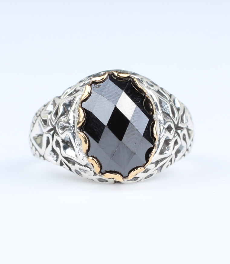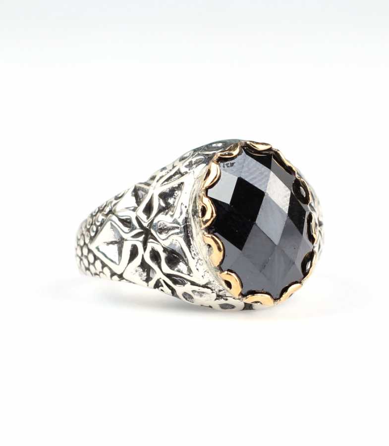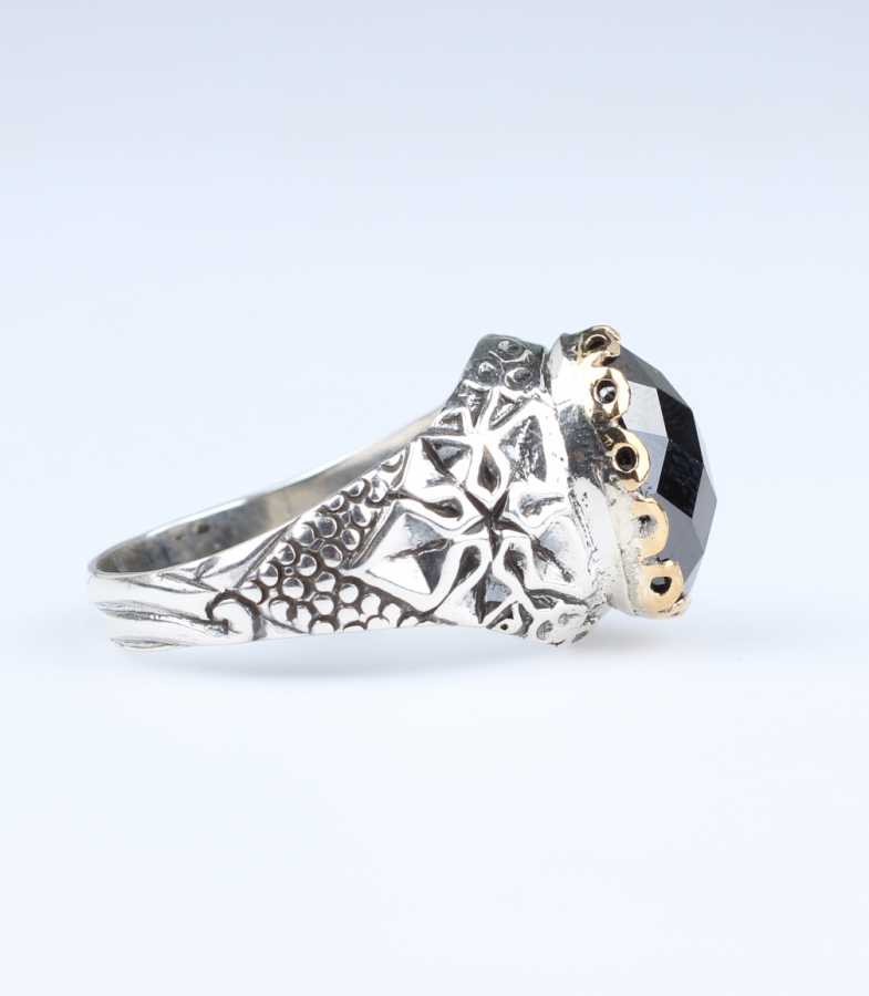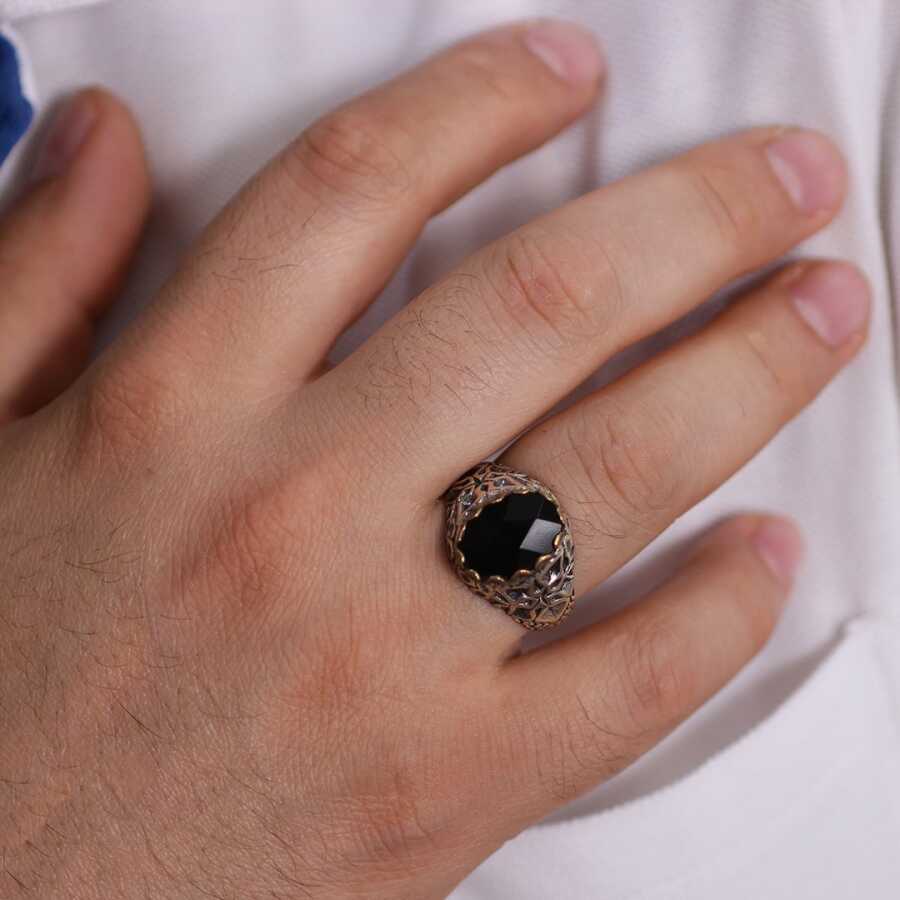 Yüzük 925 ayar gümüşten üretilmiştir. Antik tasarım yüzük 1,1 cm'ye 1,5 cm boyutlarındadır. Resimdeki yüzük 26 ölçüdür, ancak tüm ölçüler yapılabilmektedir. Antik gümüş yüzük fasetli garnet taşlıdır. Ağırlığı 7 gramdır.