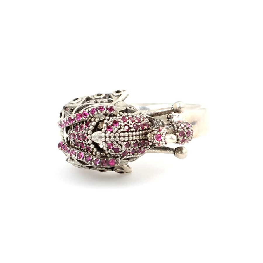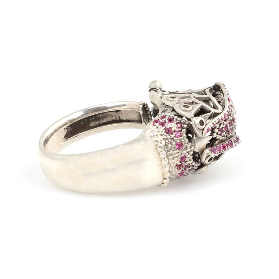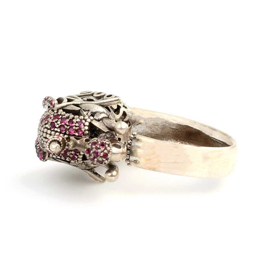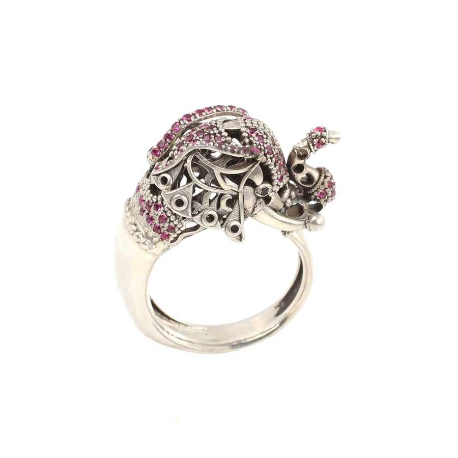 Yüzük 925 ayar gümüşten üretilmiştir. Modern tasarım gümüş yüzük fil kafası ile tasarlanmıştır. Resimdeki yüzük 16 ölçüdür, ancak tüm ölçüler yapılabilmektedir. Yüzük pembe renk zirkon taşlıdır. Ağırlığı 8,9 gramdır.