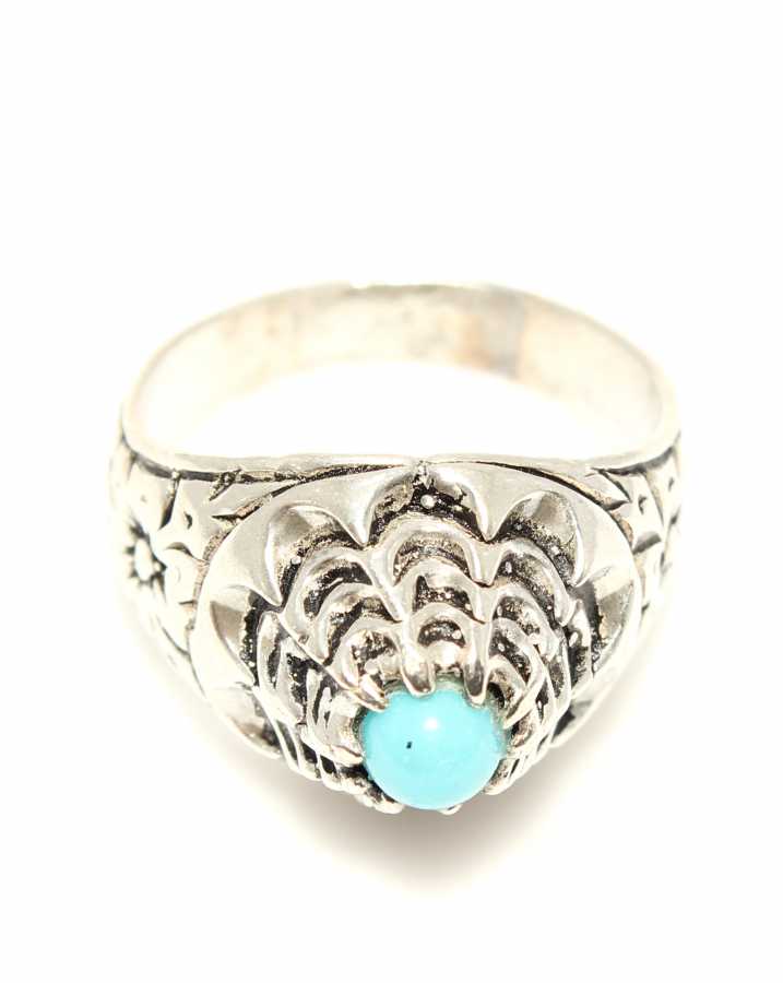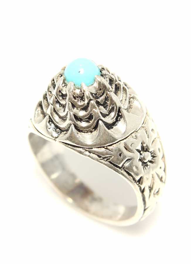 Yüzük 925 ayar gümüşten üretilmiştir. Resimdeki yüzük 15 ölçüdür, ancak tüm ölçüler özel olarak yapılabilmektedir. Yüzük turkuaz taşlıdır. Ağırlığı 8 gramdır.