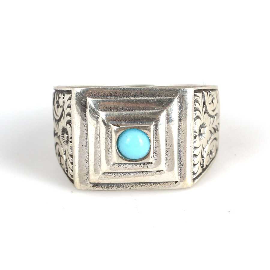 925 Ayar Gümüş Firuze Taşlı Piramit Erkek Yüzük