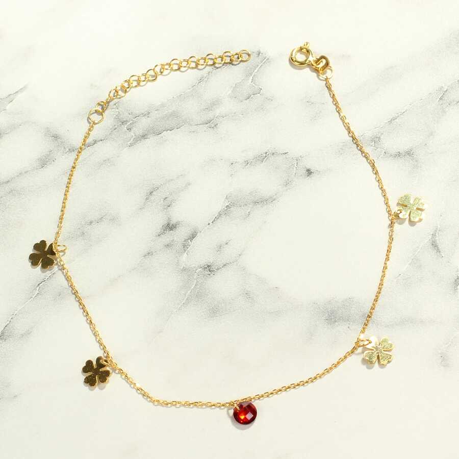 925 ayar gümüştür. Garnet taşlı ve 4 adet 4 yapraklı yoncadan oluşmaktadır. Halhal Uzunluğu: 20,5 cm + 4 cm uzatma zinciri vardır. Sarı ve pembe renktedir. Seçiminize göre gönderim yapılacaktır. Gramı: 1,77 gr925 Ayar Gümüş Garnet Taşlı 4 Yapraklı Yonca Halhal