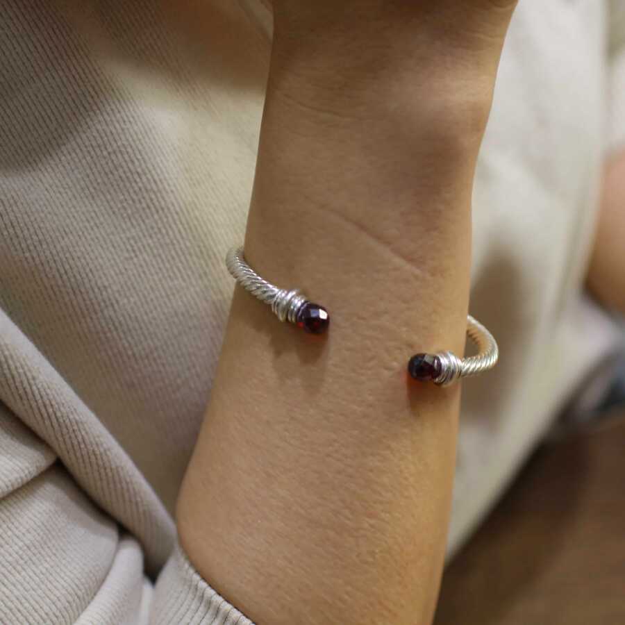 Bilezik 925 ayar gümüşten imal edilmiştir. 6 tel burgu bilezik 6,2 cm çapındadır. Bileziğin önü 0,9 cm genişliğindedir. Bilezik garnet taşlıdır. Ağırlığı 21,73 gramdır.