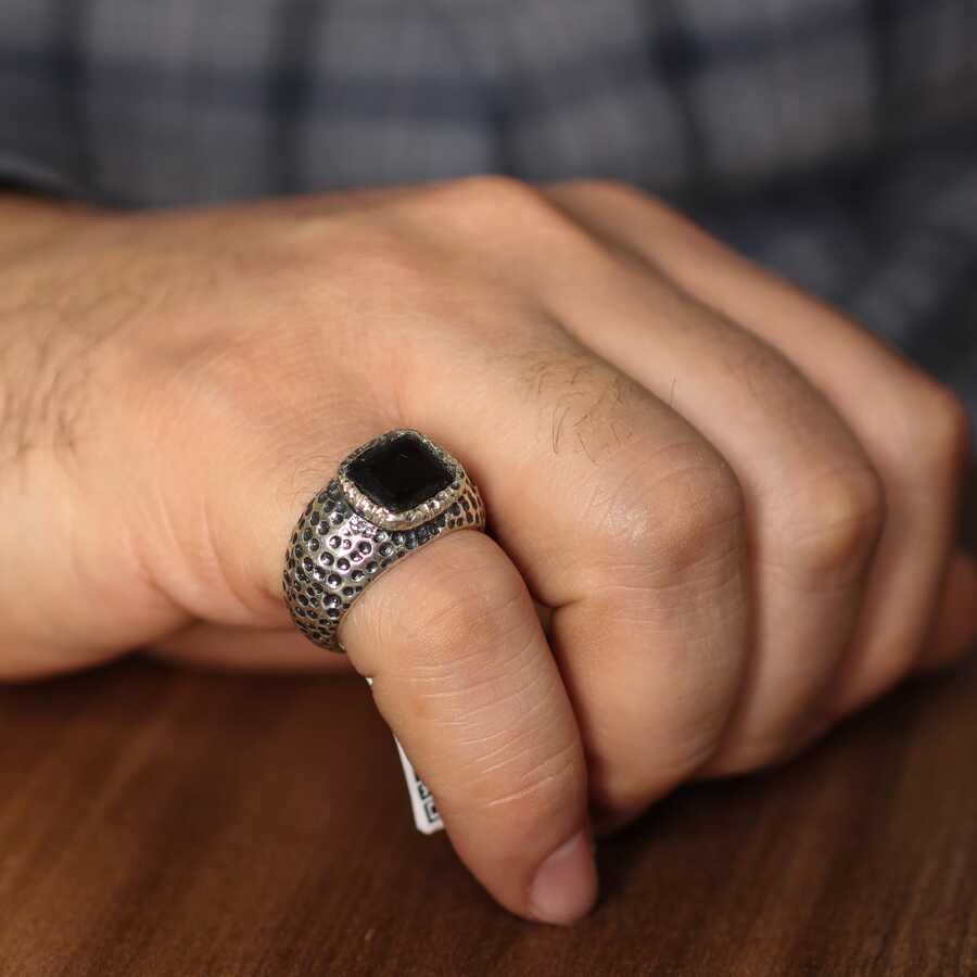 925 Ayar Gümüş Garnet Taşlı Dikdörtgen Erkek Yüzük