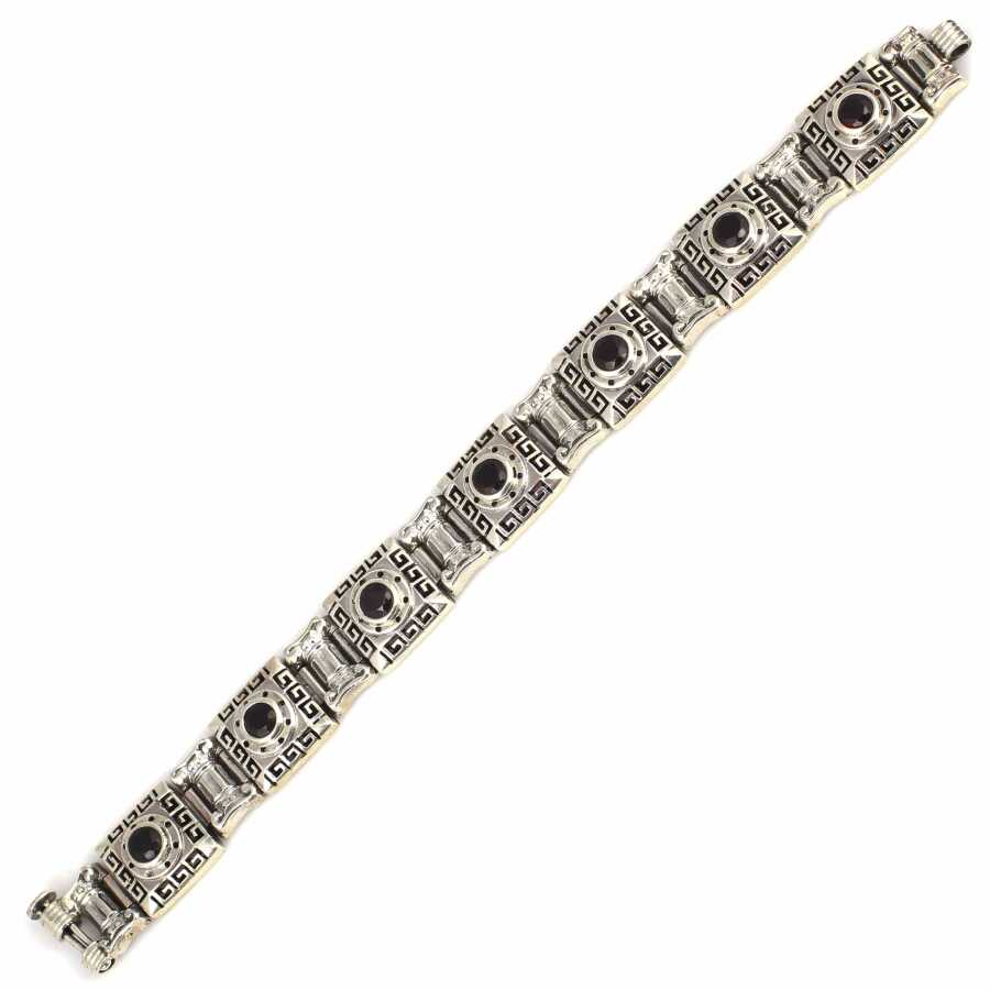 Gümüş bileklik 925 ayar gümüşten imal edilmiştir Kare bileklik 17 cm'ye kadar uzanır Bileklik 1,4 cm boyutlarındadır. Bileklik garnet taşlıdır. Ağırlığı 35,30 gramdır.