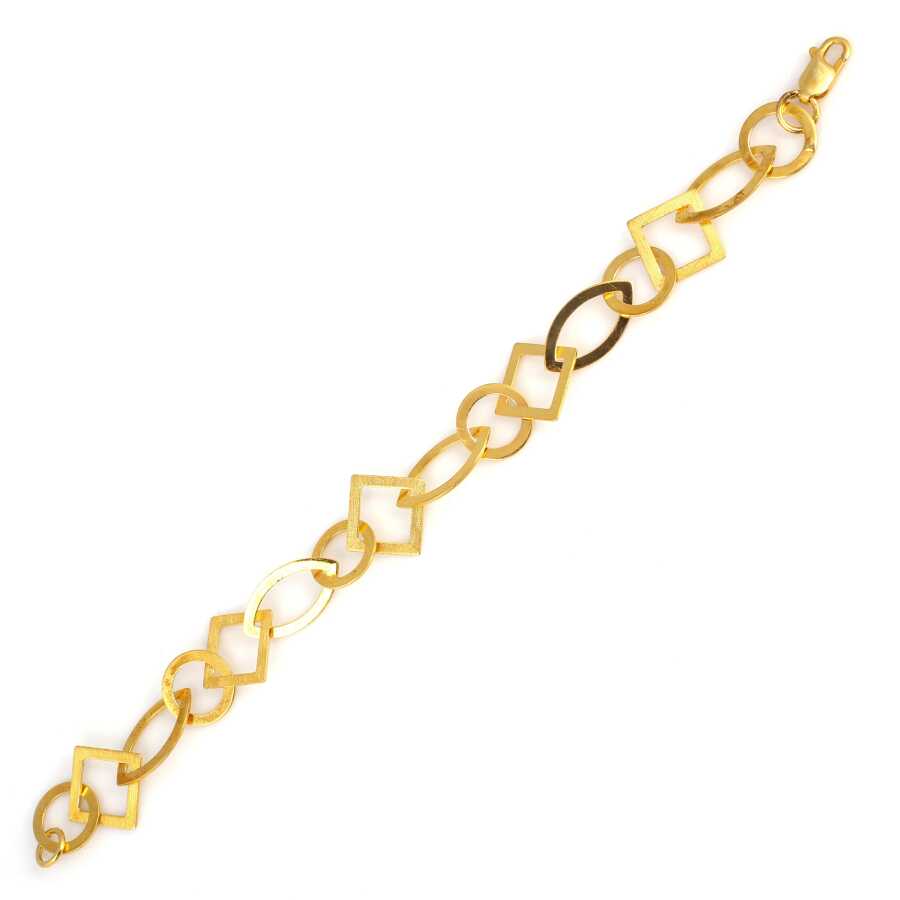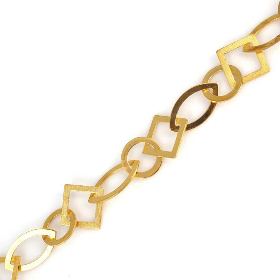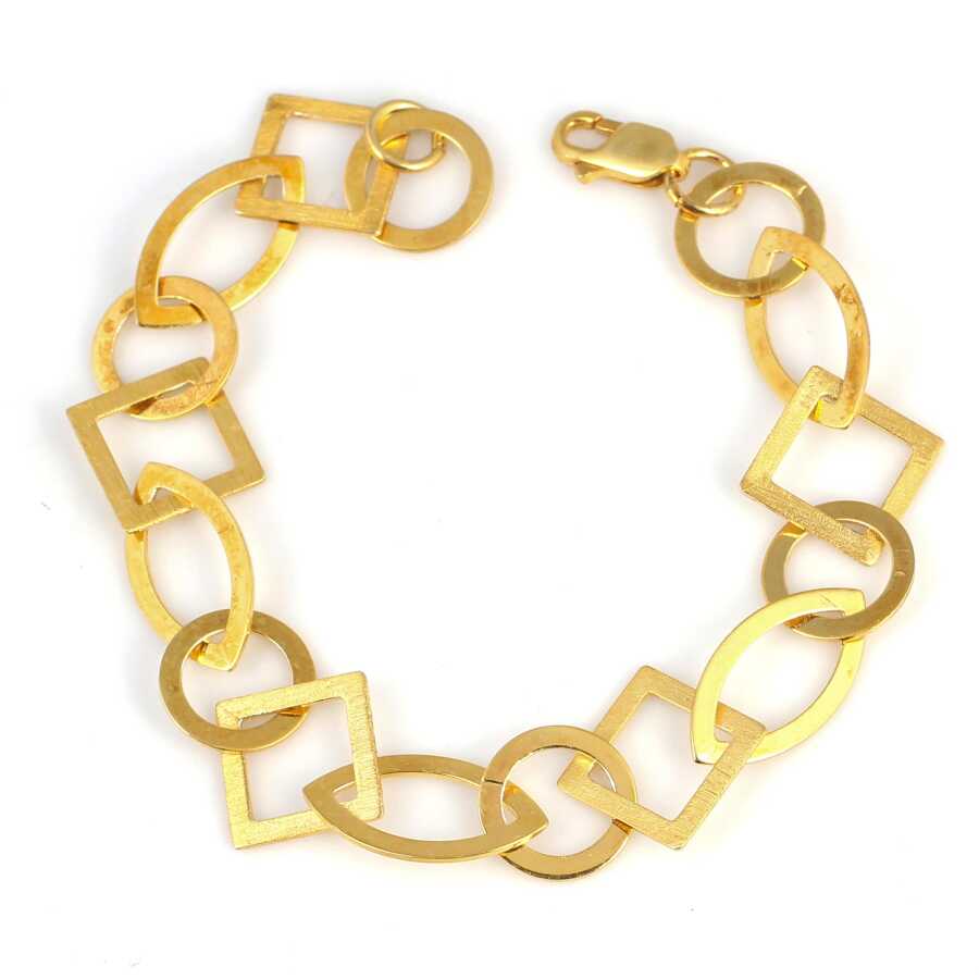 Gelince Haber Ver Bileklik 925 ayar gümüşten imal edilmiştir. Geometrik parçalı zincir bileklik 21 cm uzunluğundadır. Bileklik 1,8 cm genişliğindedir. Gümüş elips parça 1,1 cm'ye 2,1 cm, kare 1,8 cm ve yuvarlak 1,3 cm boyutlarındadır Bileklik taşsızdır. Zincir bileklik sarı renk rodajlıdır. Ağırlığı 10,33 gramdır.