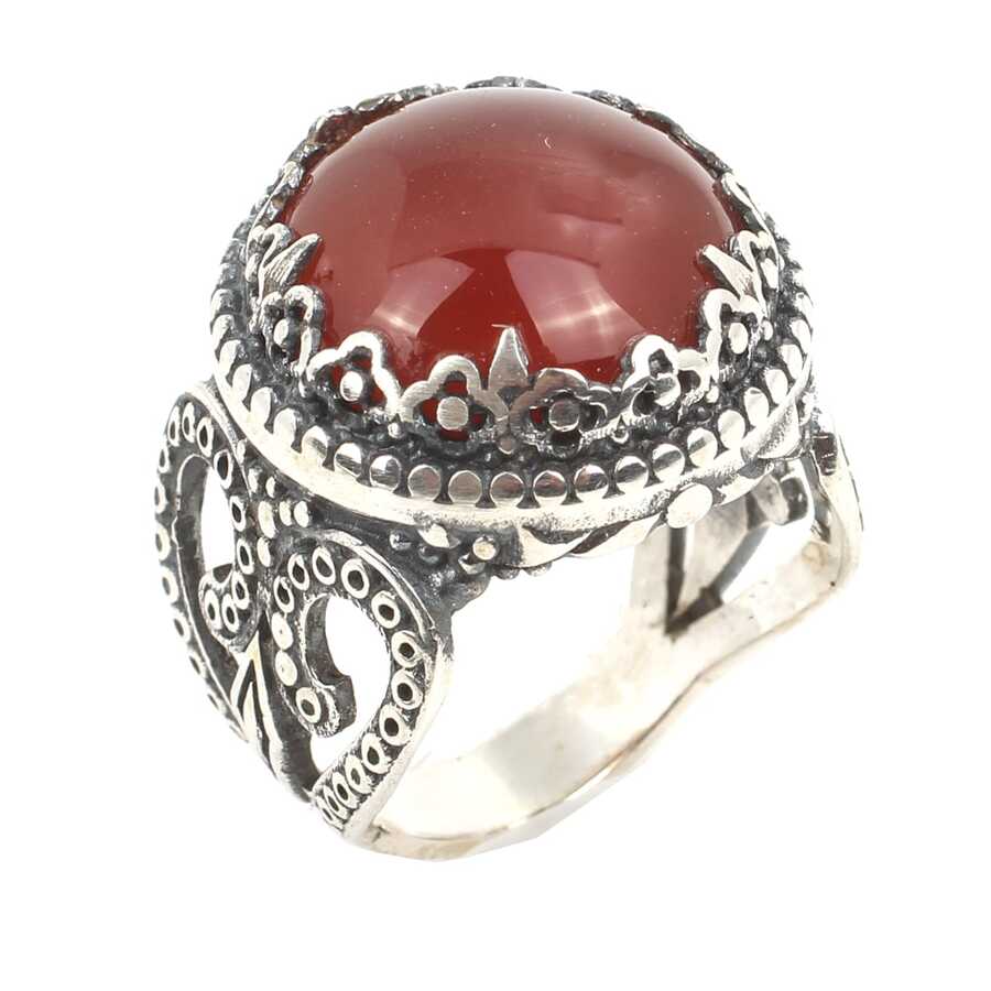 Yüzük 925 ayar gümüşten üretilmiştir. Taşlı yüzük 1,8 cm boyutlarındadır. Resimdeki yüzük 17 ölçüdür, ancak tüm ölçüler özel olarak yapılabilmektedir. Yüzük gerçek akik taşlıdır. Ağırlığı 14,81 gramdır.