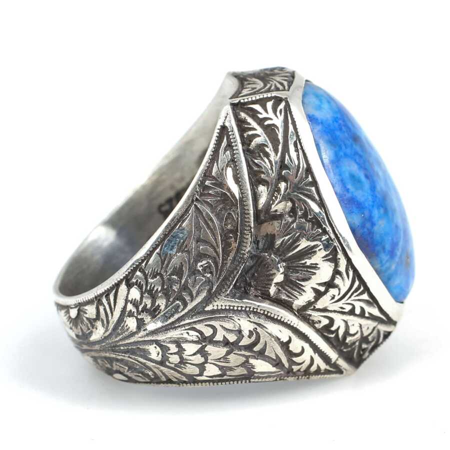 Yüzük 925 ayar gümüşten üretilmiştir. yüzüğün üst kısmı 27*21 cm boyutlarındadır. Taş yuvası 22*16 cm boyutlarındadır. Resimdeki yüzük 28 ölçüdür, ancak tüm ölçüler özel olarak yapılabilmektedir. Yüzük gerçek lapis taşlıdır. Ağırlığı 27,19 gramdır.