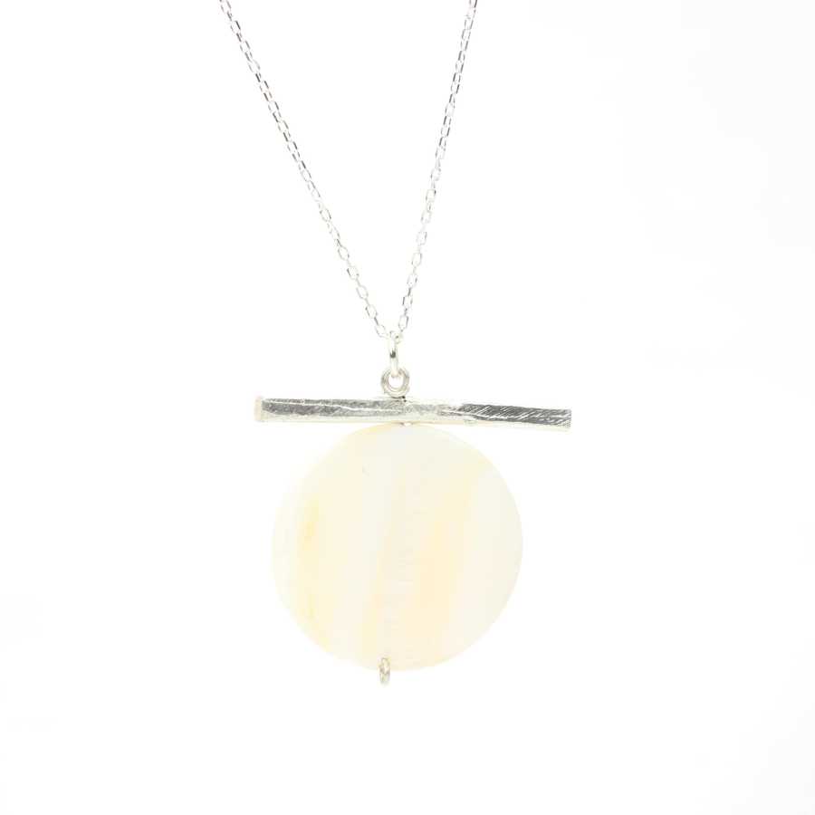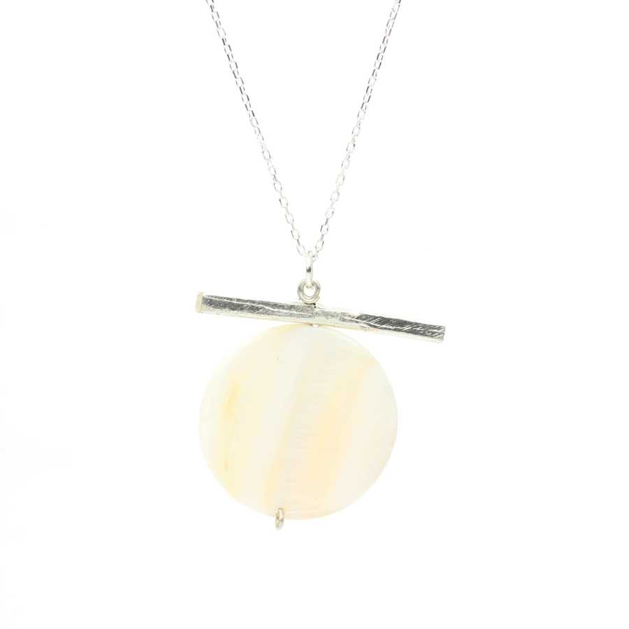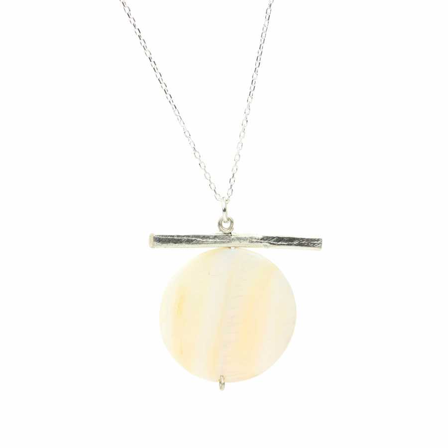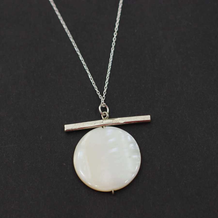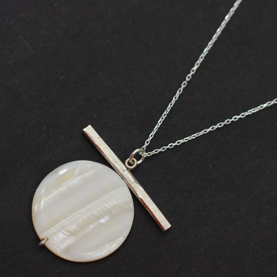 Gümüş kolye 925 ayar gümüşten yapılmıştır. Yuvarlak gerçek taş kolye 2,8 cm'ye 3,3 cm boyutlarındadır. Zinciri 45 cm uzunluğundadır. Kolye gerçek sedef taşlıdır. Ağırlığı 6,07 gramdır.
