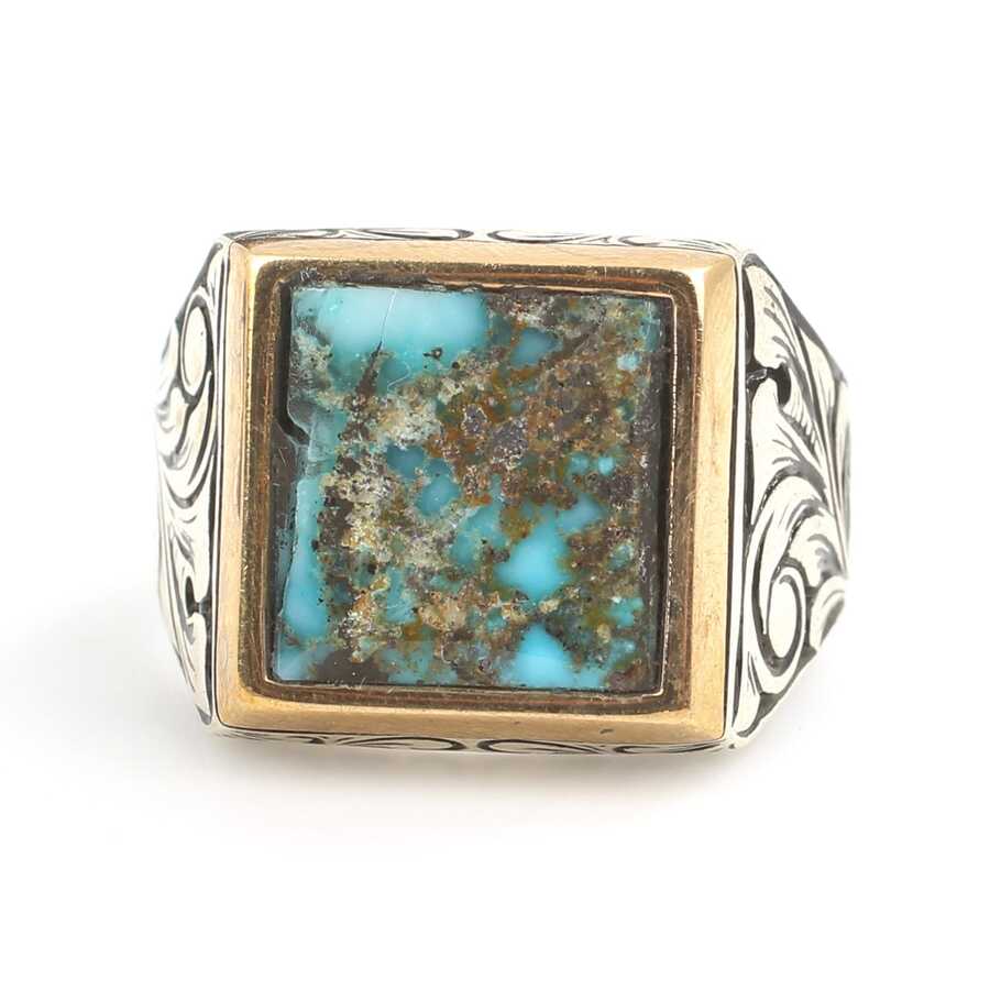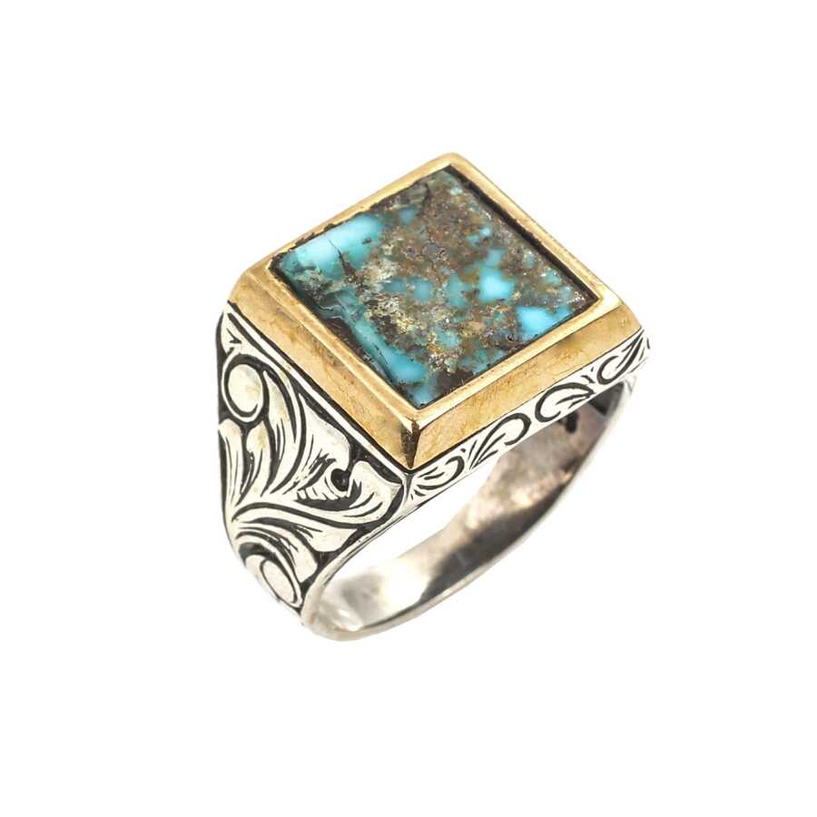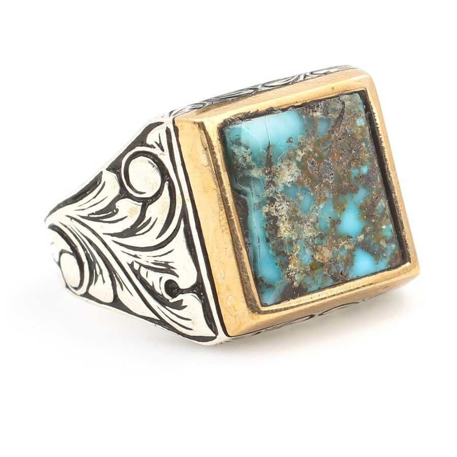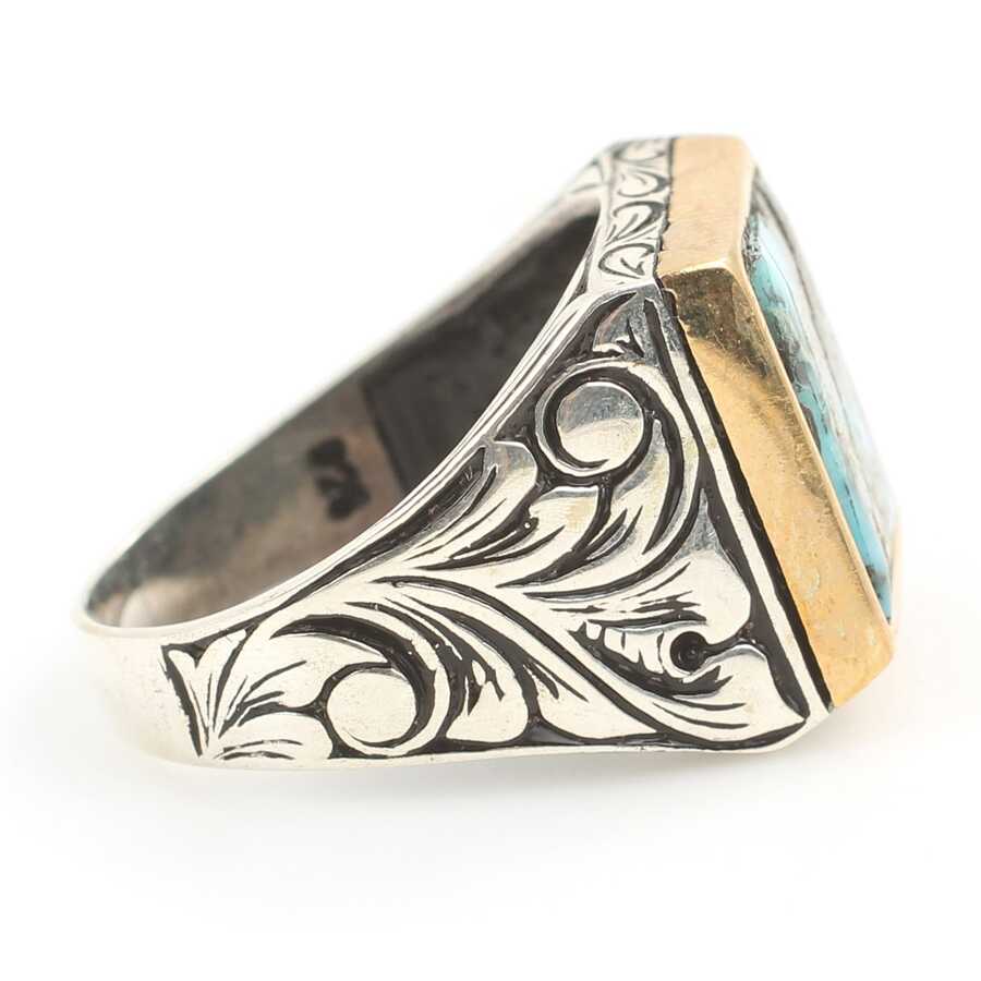 925 Ayar Gümüş Gerçek Turkuaz Taşlı Erkek Yüzüğü