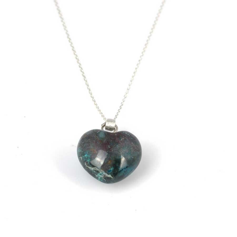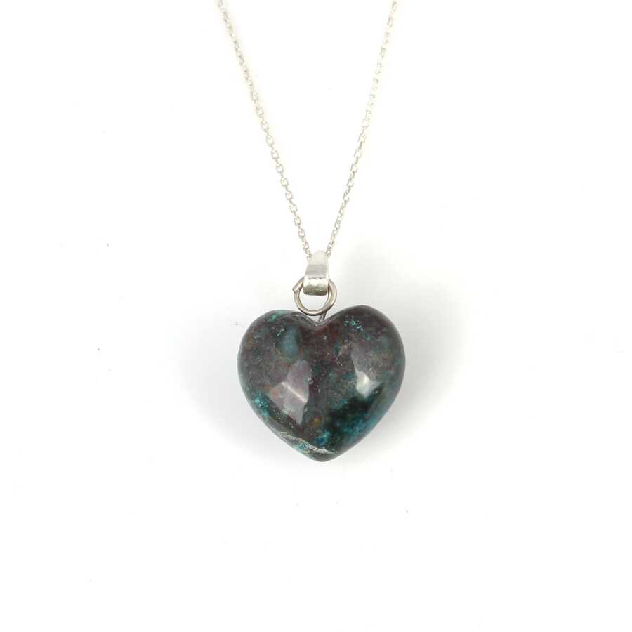 Gümüş kolye 925 ayar gümüşten yapılmıştır. Zoisit taşlı kolye 2,7 x 2,0 cm boyutlarındadır. Kolye 42 cm uzunluğundadır. Kolye zoisit taşlıdır. Ağırlığı 8,6 gramdır.