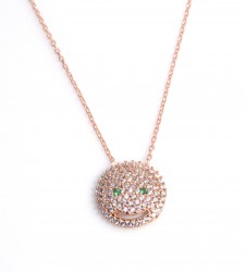 925 Ayar Gümüş Gülen Yüz Kolye, Pembe - Beyaz Yeşil Taş