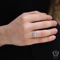 925 Ayar Gümüş Gülen Yüz Modeli Yüzük, Pembe - Beyaz Taş