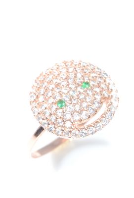 Yüzük 925 ayar gümüşten üretilmiştir. Gülen yüz şeklindeki yüzük 16 ölçüdür. Tüm ölçüler yapılabilmektedir. Yüzük yeşil ve beyaz zirkon taşlara sahiptir. Gülen yüz şeklindeki parça 1,5 cm boyutlarındadır. Ağırlığı 1,94 gramdır.
