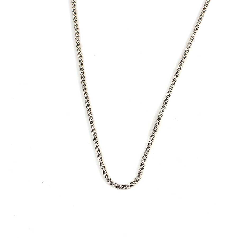 Gümüş kolye 925 ayar gümüşten yapılmıştır. Halat burgu zincir kolye 50 cm uzunluğundadır. Oksitlendirilmiş zincir 0,3 cm kalınlığındadır. Kolye taşsızdır. Ağırlığı 16,71 gramdır.