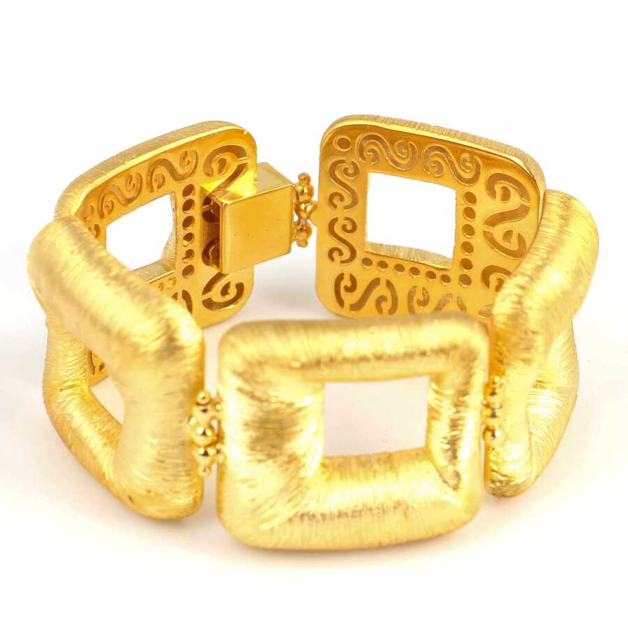 Bileklik 925 ayar gümüşten imal edilmiştir. Gümüş bileklik 17 cm uzunluğundadır. Havuz model bileklik 3,1 cm enindedir. İçi boş havuz bilekliğin arkası desenlidir. Gümüş bileklik taşsızdır. Ağırlığı 39 gramdır.