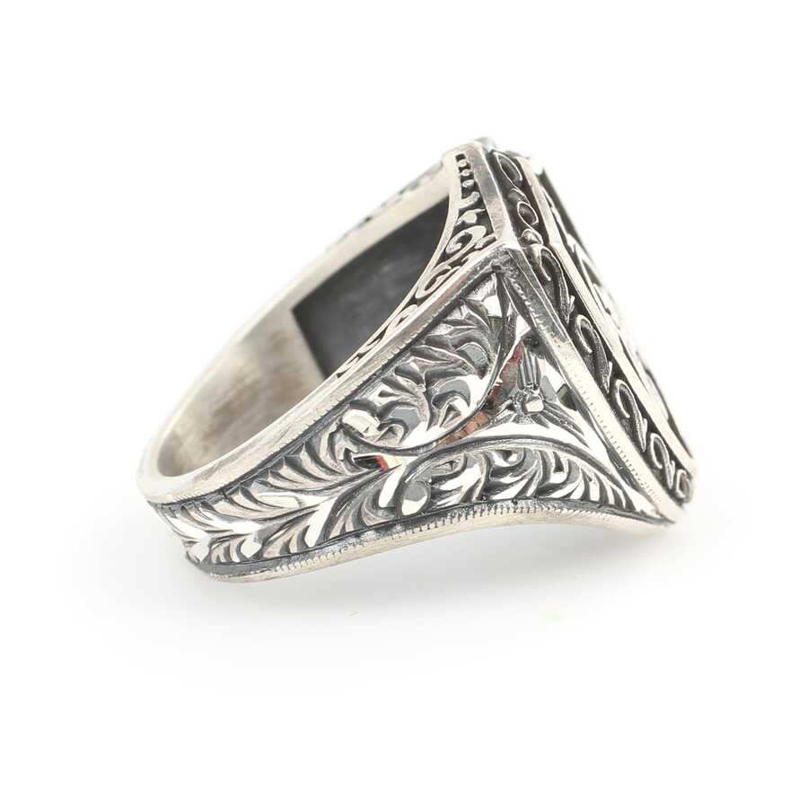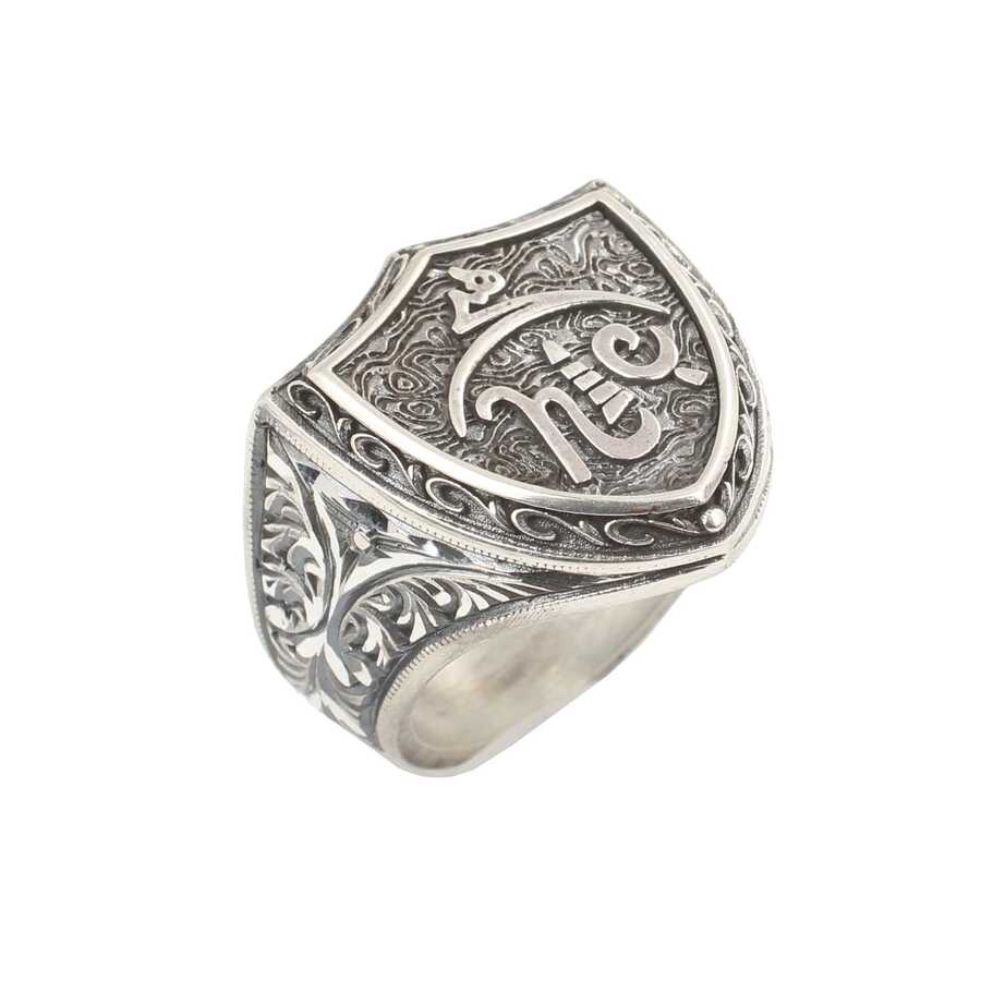 Yüzük 925 ayar gümüşten üretilmiştir Yüzüğün üzerinde el kalemi atılarak tasarlanmıştır. Taşsız yüzük 2,4 cm'ye 2,1 cm boyutlarındadır. Yüzüğün üzerinde "hiç" yazmaktadır. Resimdeki yüzük 24 ölçüdür, ancak tüm ölçüler özel olarak yapılabilmektedir. Yüzük taşsızdır. Ağırlığı 14,42 gramdır.