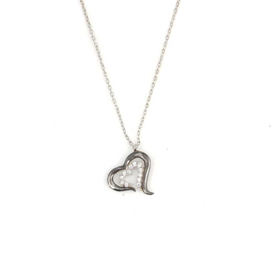 Gelince Haber Ver Romantik detayları modern bir çizgiyle buluşturan bu özel tasarım 925 ayar gümüş iç içe kalp kolye, sade dış hatları ve iç kısmındaki beyaz taşlı kalp detayıyla dikkat çeker. İç kalpteki taşlar kolyeye dengeli bir ışıltı kazandırırken, dış formun pürüzsüz gümüş dokusu tasarımı zamansız kılar.