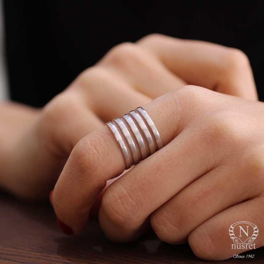 Yüzük 925 ayar gümüşten üretilmiştir. Şerit şeklindeki yüzük ayarlanabilir ölçüdür. Yüzük taşsızdır. Eklem yüzüğü olarak ta kullanabilirsiniz. Ağırlığı 5,5 gramdır.