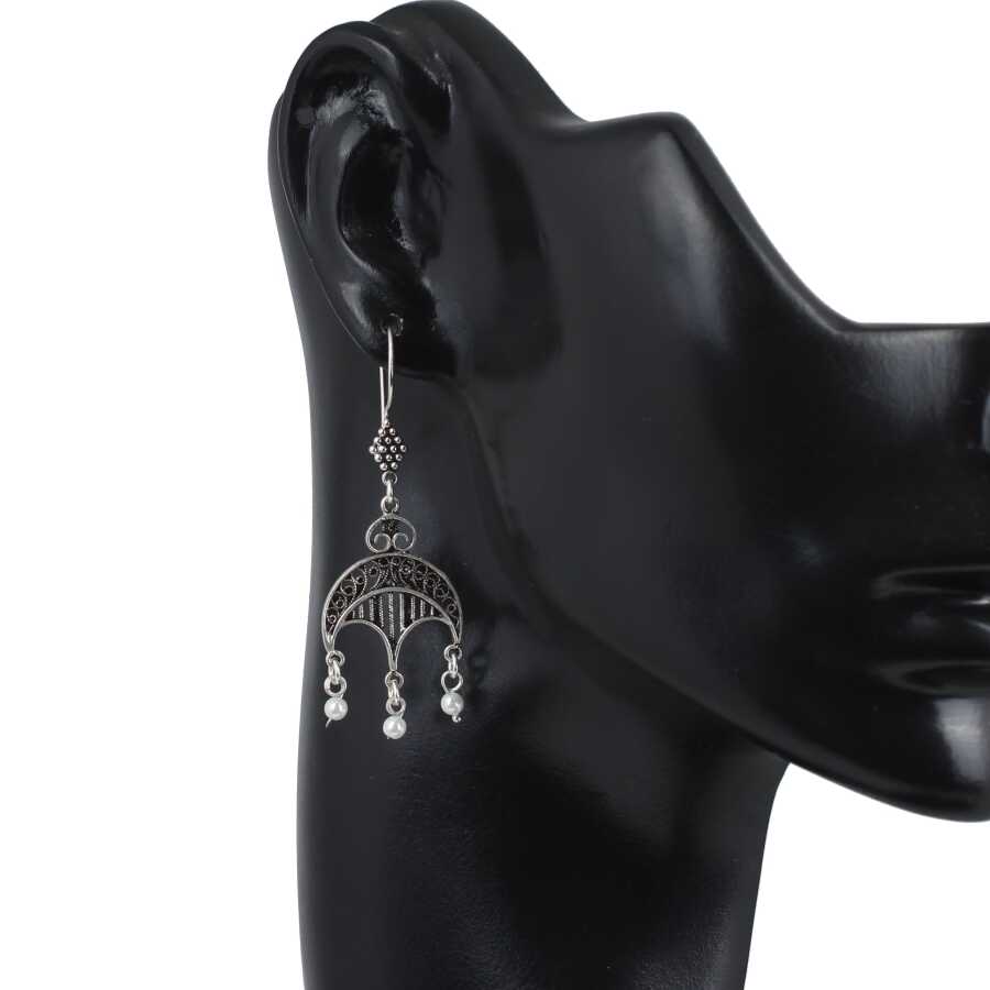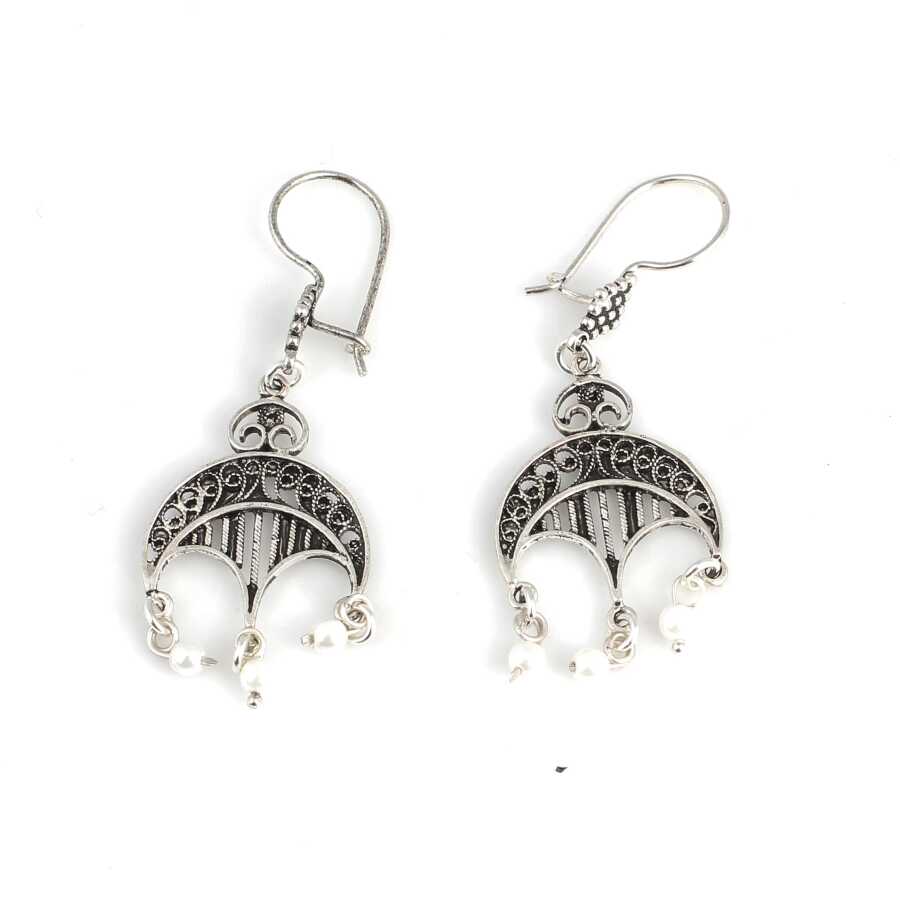 925 Ayar Gümüş İnci Taşlı Telkari Küpe