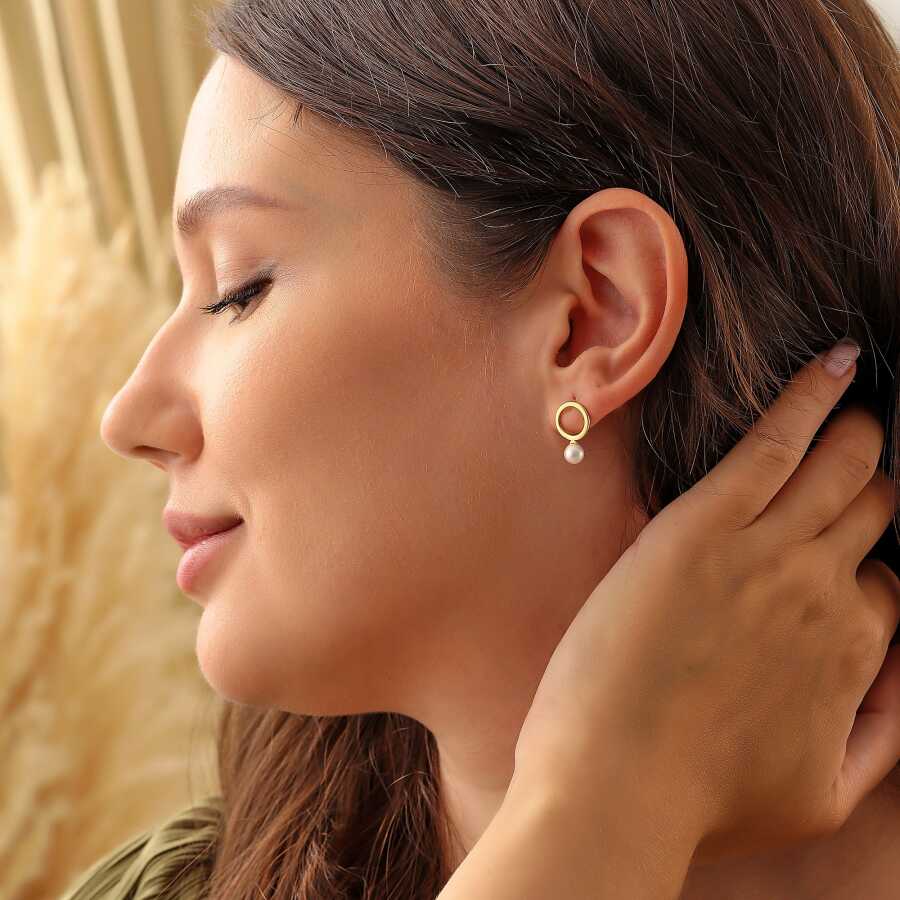 Gümüş küpe 925 ayar gümüşten üretilmiştir. Gümüş halka küpe 1,0 cm'ye 1,6 cm boyutlarındadır. Küpe inci taşlıdır. Ağırlığı 1,47 gramdır.