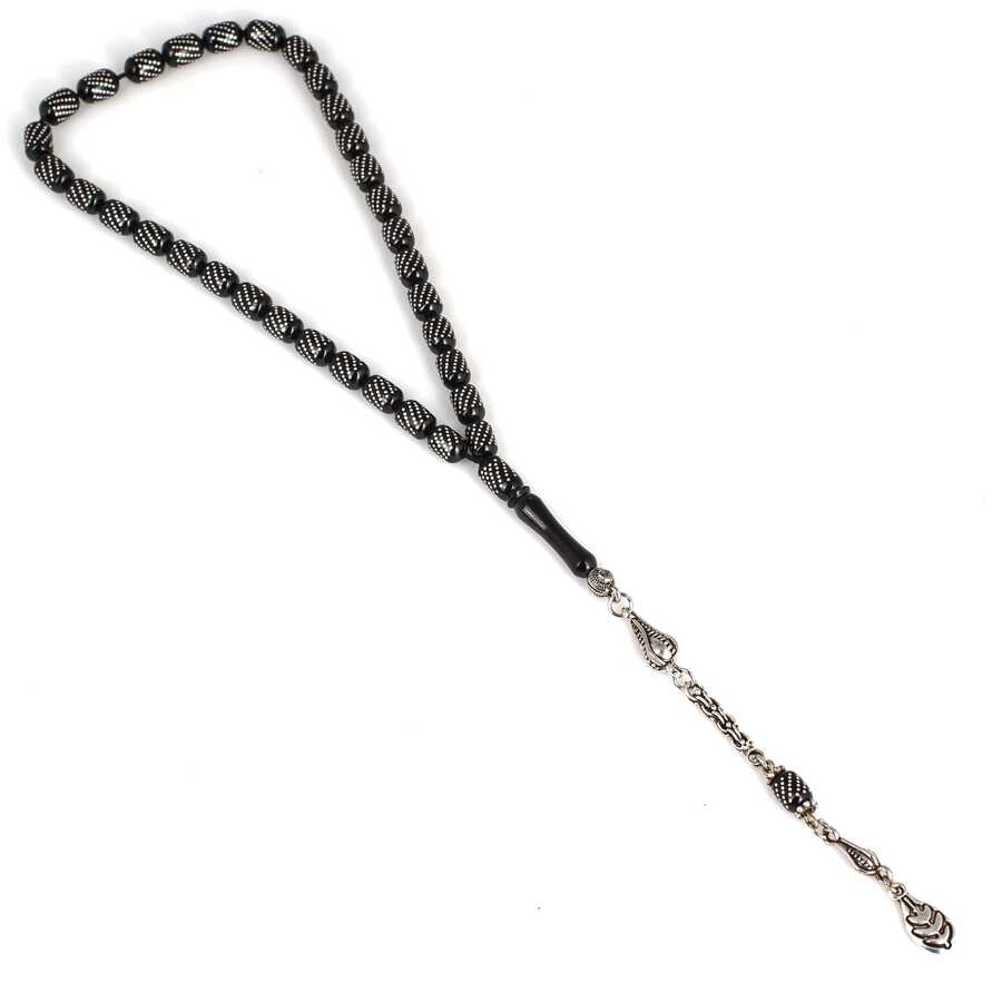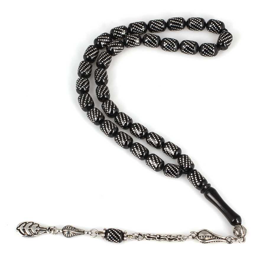 Silindir kesim işlemeli oltu taşı 0,7 cm'ye 1,0 cm habbelerden oluşmaktadır. Tespih imamesi dahil 20 cm uzunluğundadır. Püskülü 11 cm uzunluğunda olup toplam uzunluğu 31 cm'dir. Tespihin ağırlığı 21,96 gramdır.