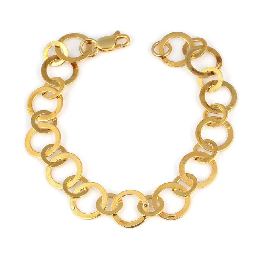 Notify me when its in stockBileklik 925 ayar gümüşten imal edilmiştir. Halka zincir bileklik 21 cm uzunluğundadır. Bileklik 1,3 cm genişliğindedir. Gümüş halka 1,3 cm ve 0,9 cm olarak 2 farklı boylardadır. Bileklik taşsızdır. Zincir bileklik sarı renk rodajlıdır. Ağırlığı 10,9 gramdır.