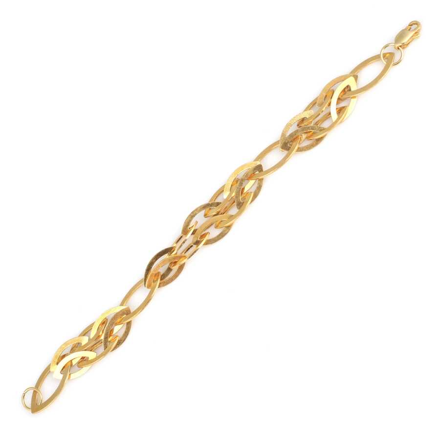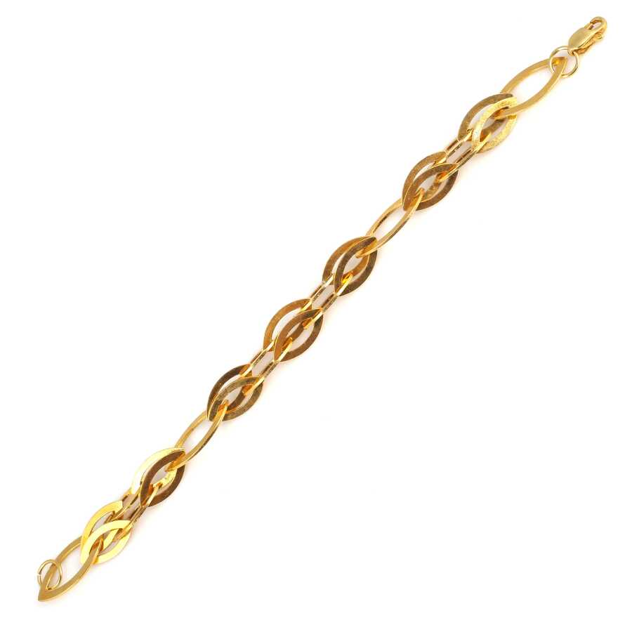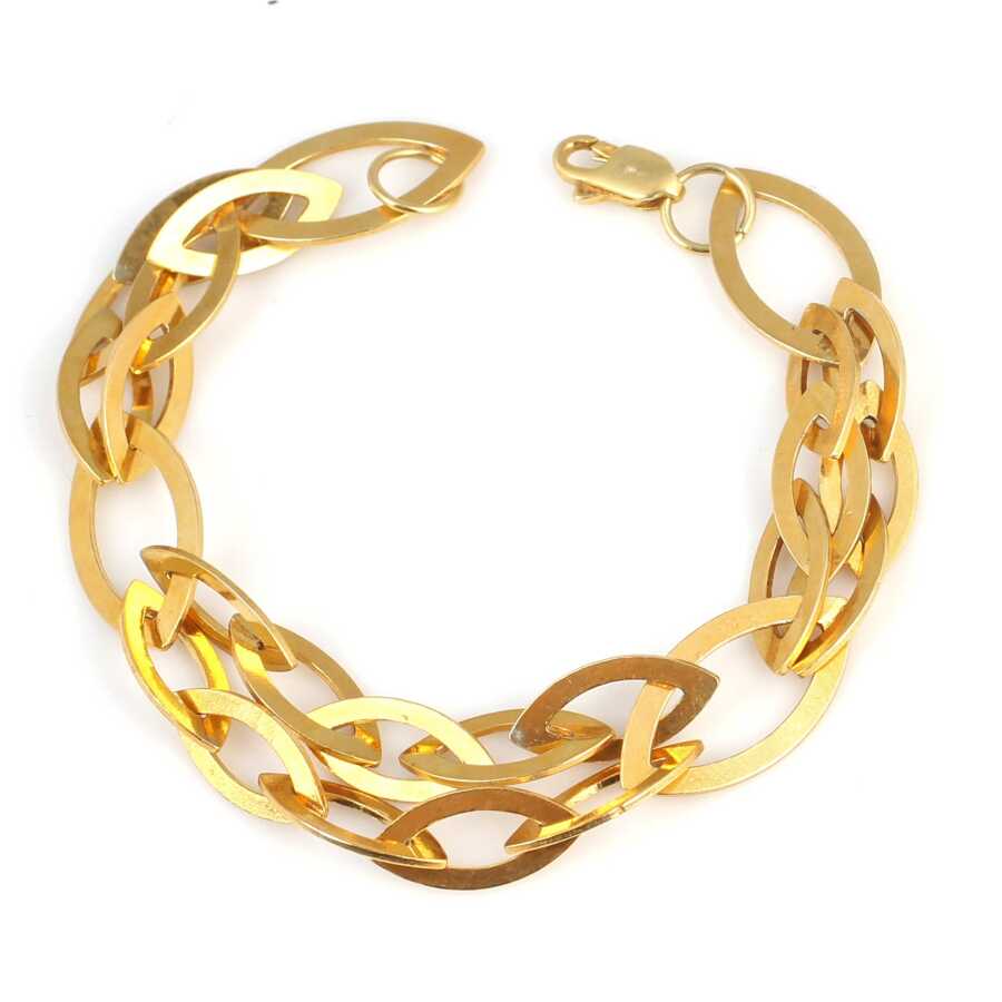Gelince Haber Ver Bileklik 925 ayar gümüşten imal edilmiştir. Badem zincir bileklik 17 cm uzunluğundadır. Bileklik 0,7 cm genişliğindedir. Gümüş elips parça 2,1 cm'ye 1,1 cm ile 1,6 cm'ye 0,7 cm arasında 4 farklı boyuttadır. Bileklik taşsızdır. Zincir bileklik sarı renk rodajlıdır. Ağırlığı 11,33 gramdır.