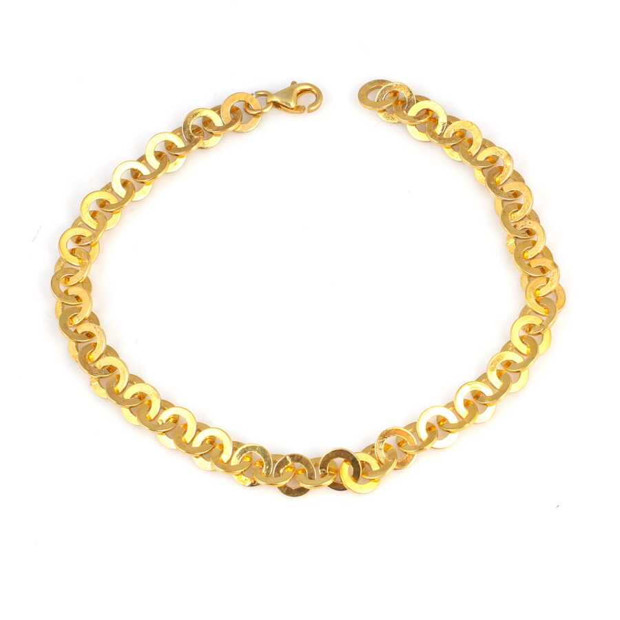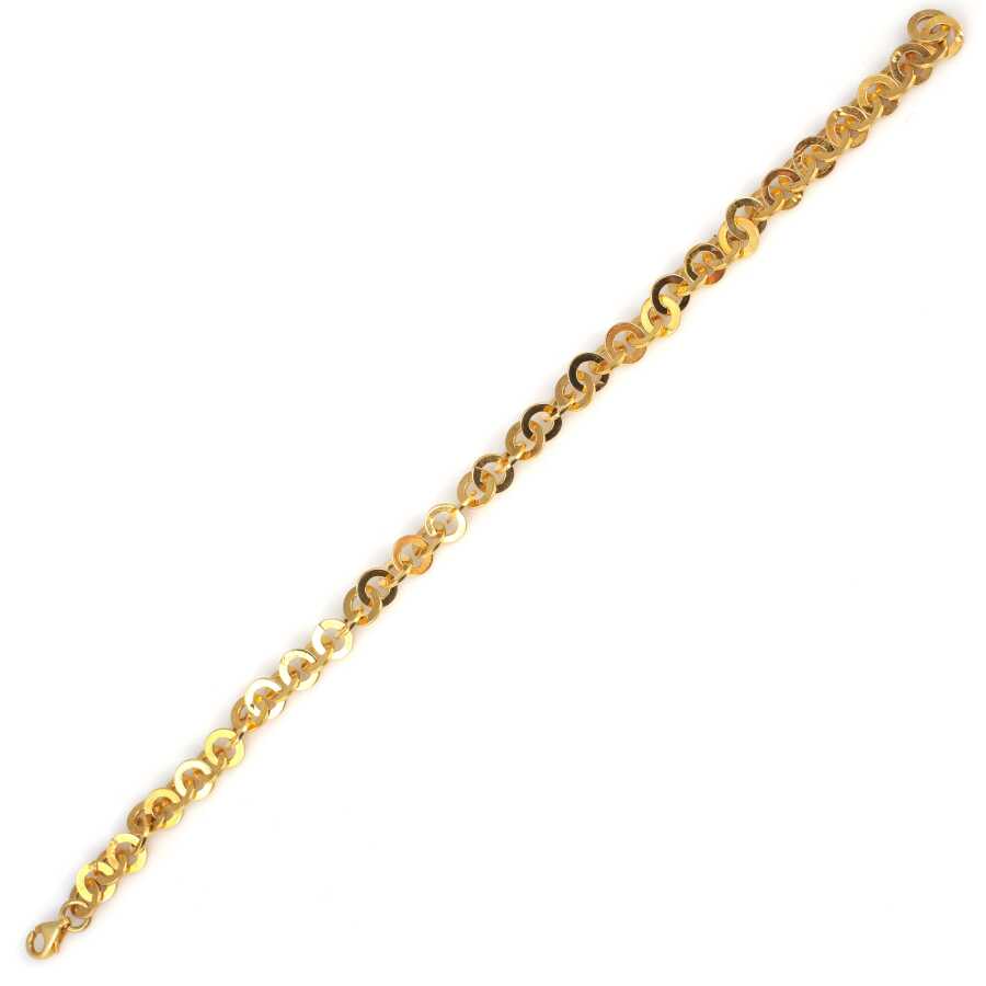 Gelince Haber VerBileklik 925 ayar gümüşten imal edilmiştir. Yuvarlak zincir bileklik 20,5 cm uzunluğundadır. Bileklik 0,6 cm genişliğindedir. Gümüş yuvarlak parça 0,6 cm boyutlarındadır Bileklik taşsızdır. Zincir bileklik sarı renk rodajlıdır. Ağırlığı 8,1 gramdır.