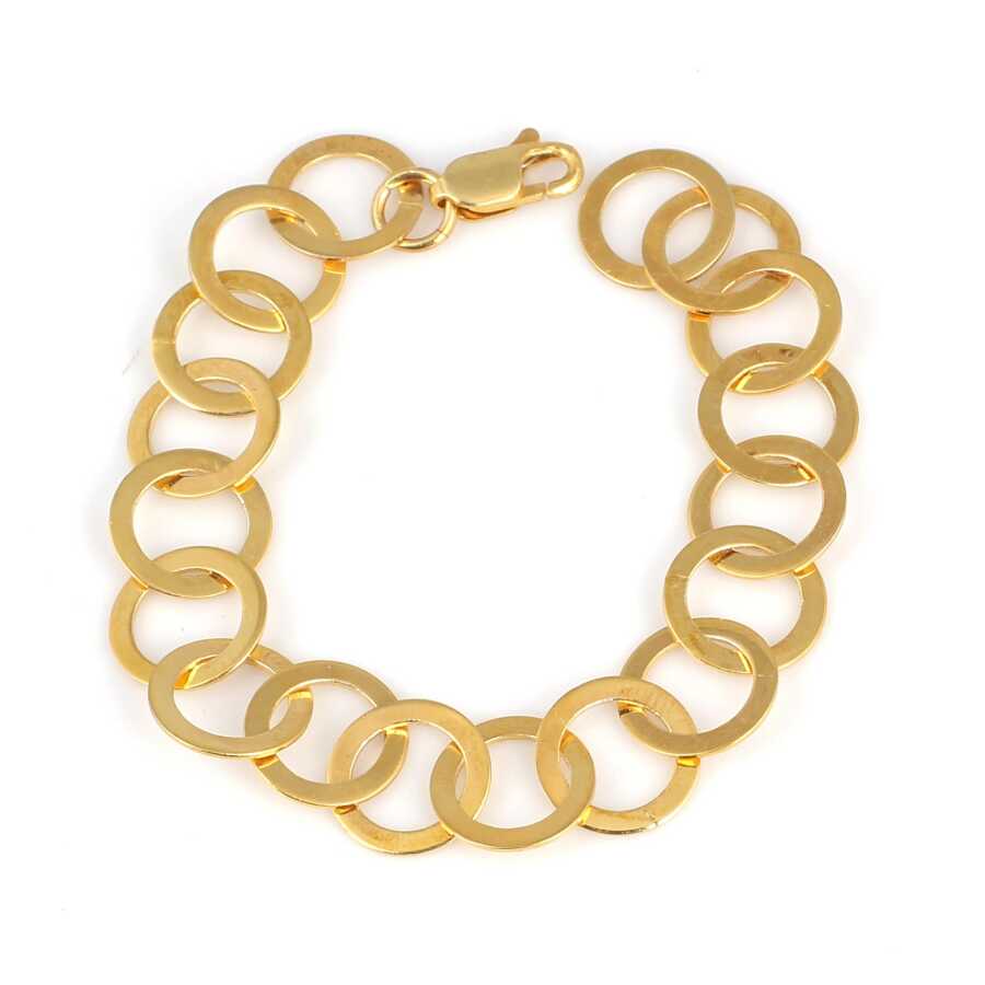 Gelince Haber Ver Bileklik 925 ayar gümüşten imal edilmiştir. Yuvarlak zincir bileklik 18,5 cm uzunluğundadır. Bileklik 1,3 cm genişliğindedir. Gümüş yuvarlak parça 1,3 cm boyutlarındadır Bileklik taşsızdır. Zincir bileklik sarı renk rodajlıdır. Ağırlığı 9,87 gramdır.