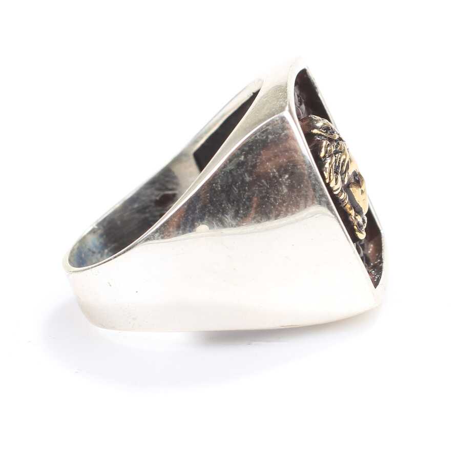925 ayar gümüştür 23,5 ölçü 20 x 20 mm kare medussa kafası erkek yüzük Gramı: 10,78 gr
