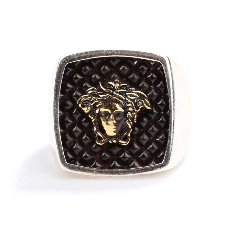 Yüzük 925 ayar gümüşten üretilmiştir. Kabartmalı Medusa kafası desenli model yüzüğün üst kısmı 2 cm boyutlarındadır. Resimdeki yüzük 24 ölçüdür, ancak tüm ölçüler yapılabilmektedir. Yüzük taşsızdır. Ağırlığı 10,78 gramdır.