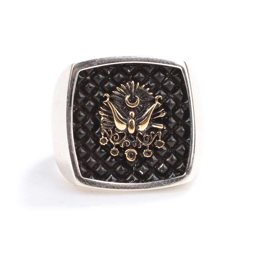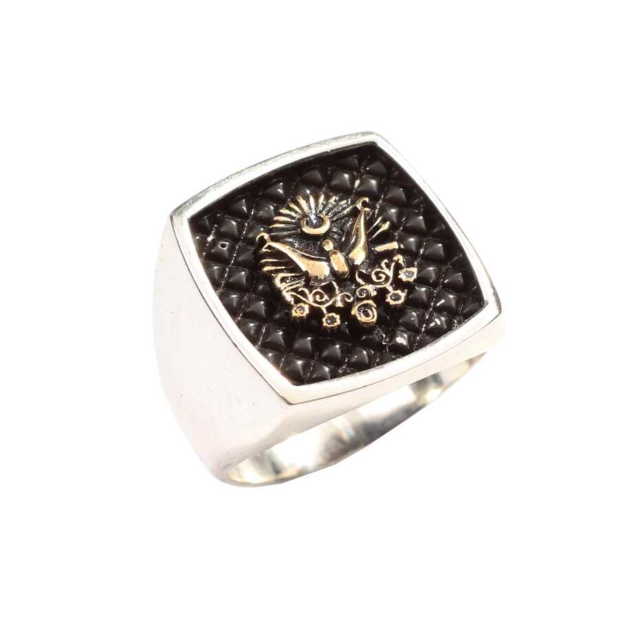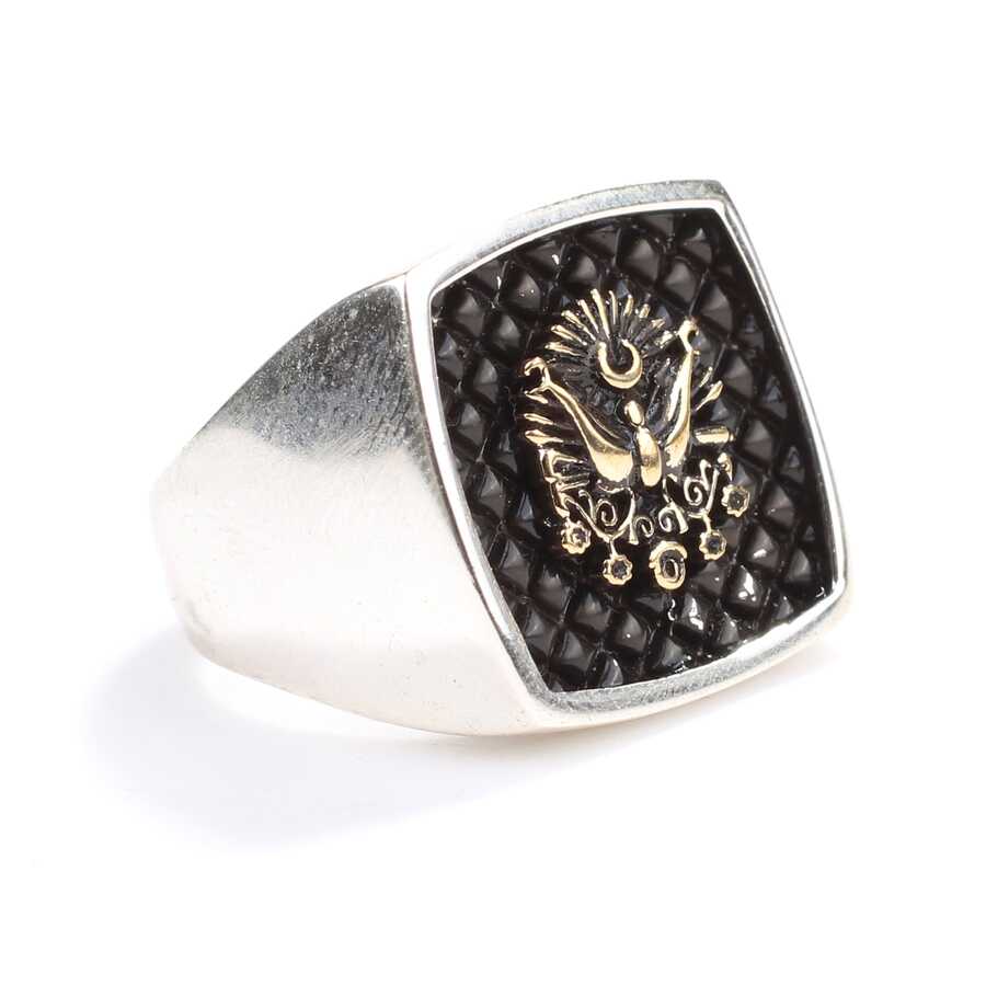 Yüzük 925 ayar gümüşten üretilmiştir. Kabartmalı Osmanlı devlet arması desenli model yüzüğün üst kısmı 2 cm boyutlarındadır. Resimdeki yüzük 23 ölçüdür, ancak tüm ölçüler yapılabilmektedir. Yüzük taşsızdır. Ağırlığı 10,75 gramdır.