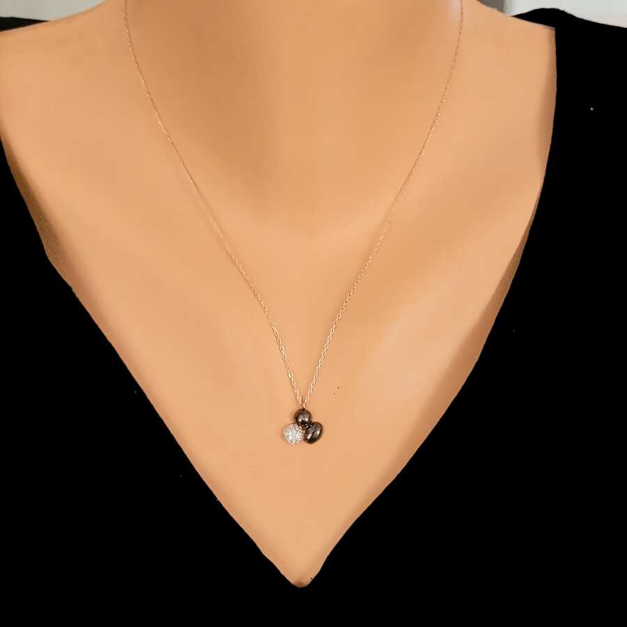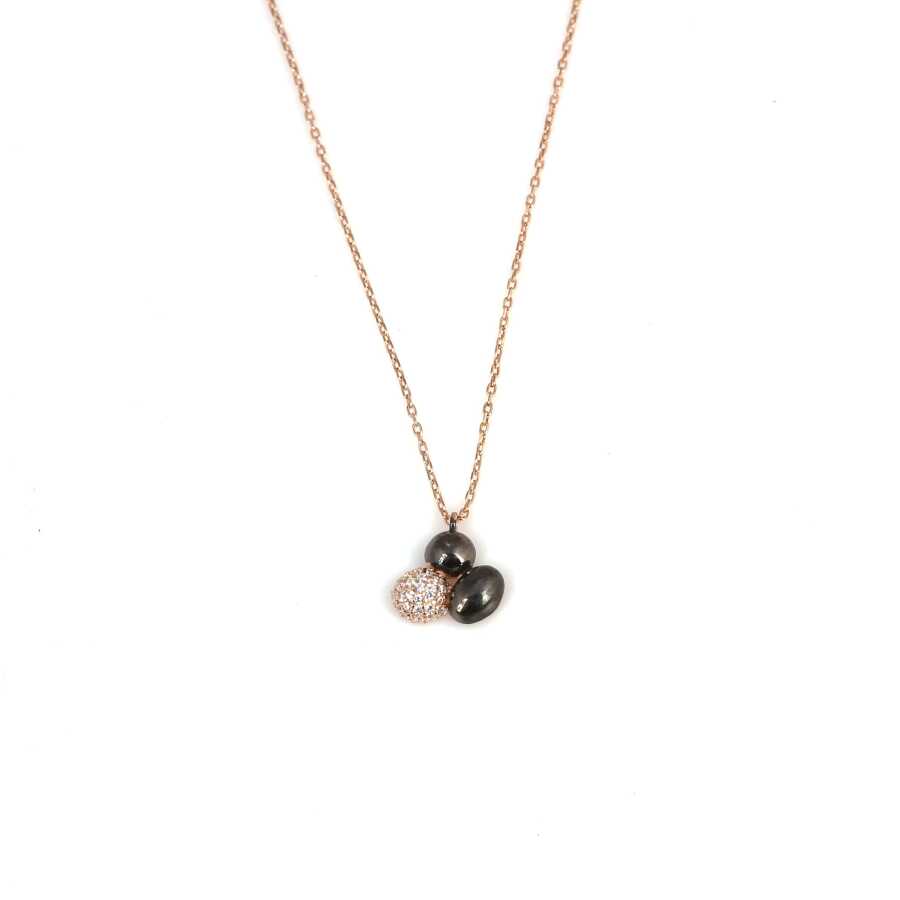 Gümüş kolye 925 ayar gümüşten yapılmıştır. Kahve çekirdeği şeklindeki kolye 1,0 cm'ye 1,1 cm boyutlarındadır. Zinciri 42 cm uzunluğundadır. Kolye zirkon zirkondur. Rose renklidir. Ağırlığı 1,75 gramdır.
