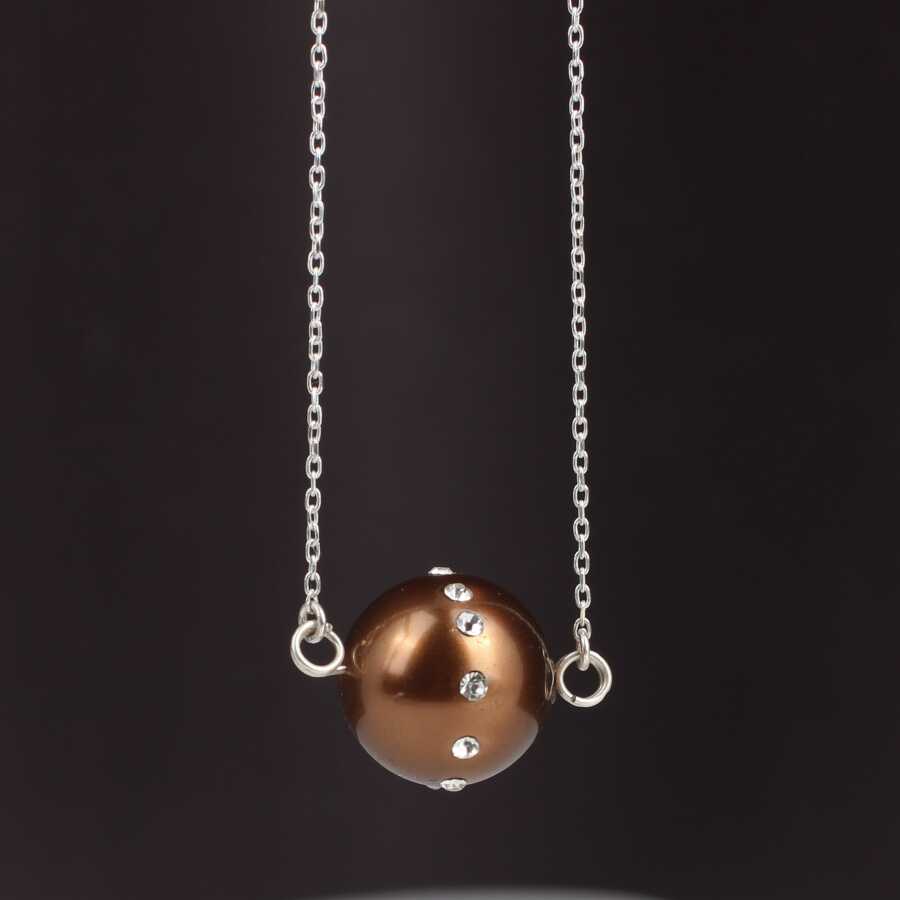 925 Ayar Gümüş Kahverengi Renkli İncili Üzeri Zirkon Taşlı Kolye
