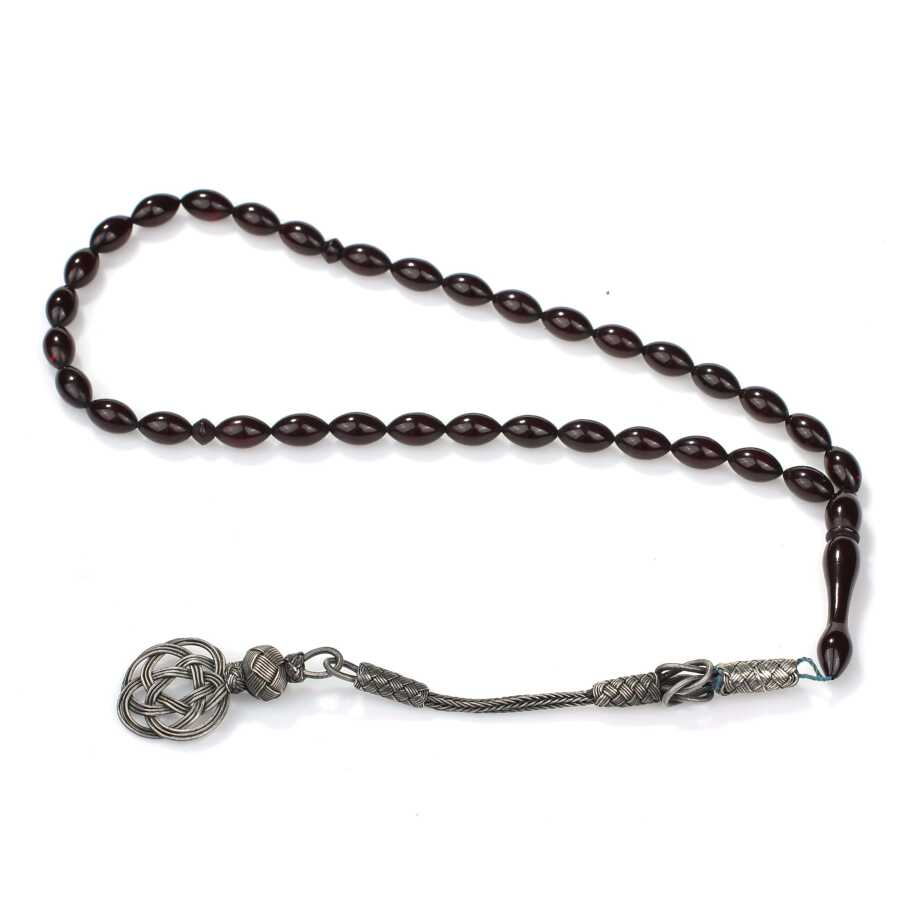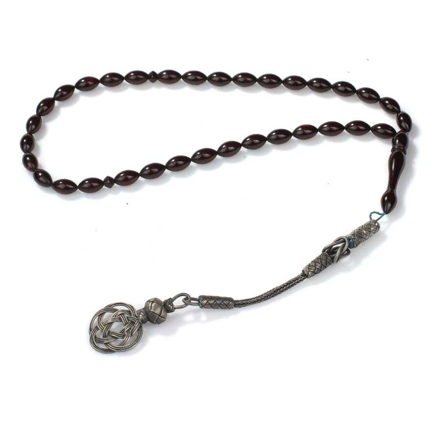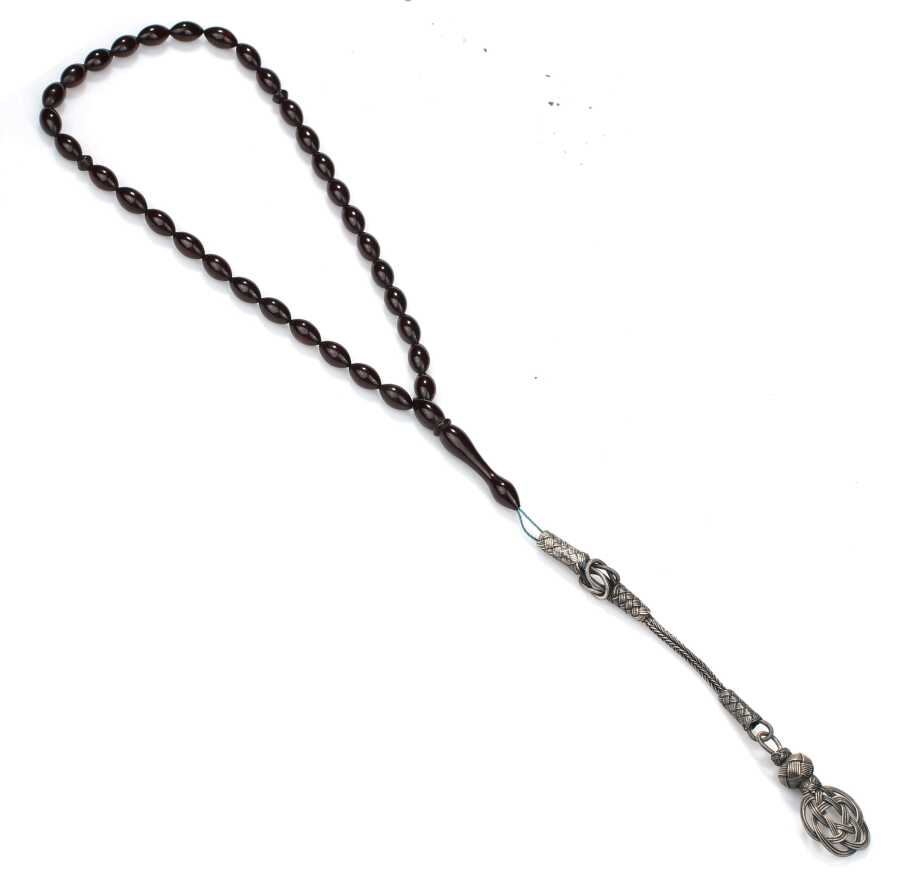 925 Ayar Gümüş Kahverengi Renkli Sıkma Kehribar Tesbihi