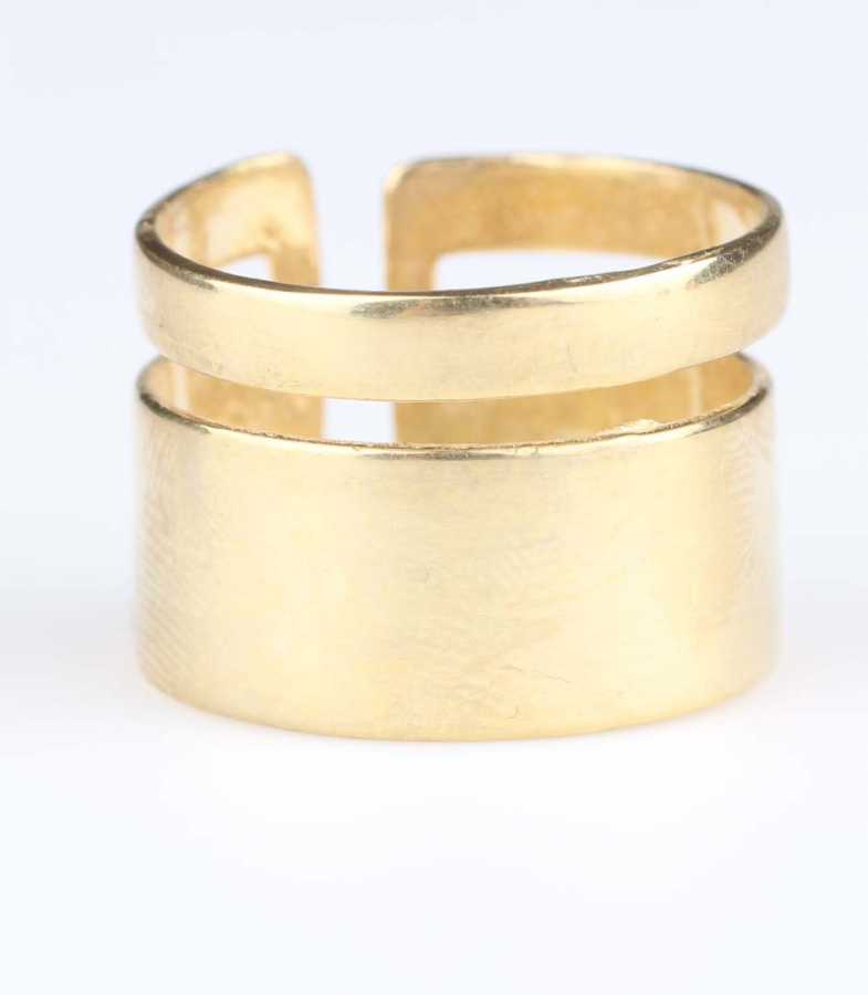 Yüzük 925 ayar gümüşten üretilmiştir. Kalın şerit şeklindeki yüzük ayarlanabilir ölçüdür. Yüzük taşsızdır. Eklem yüzüğü olarak ta kullanabilirsiniz. Sarı renk rodaj kaplama yapılmıştır. Ağırlığı 6,15 gramdır.