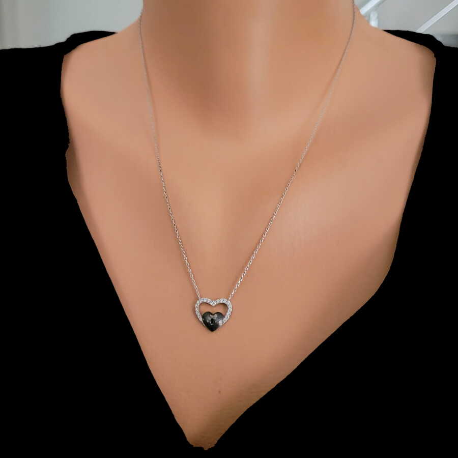 Gümüş kolye 925 ayar gümüşten yapılmıştır. Kalp anahtar deliği kolye 1,3 cm'ye 1,4 cm boyutlarındadır. Zinciri 41 cm uzunluğundadır. Kolye zirkon taşlıdır. Ağırlığı 2 gramdır.