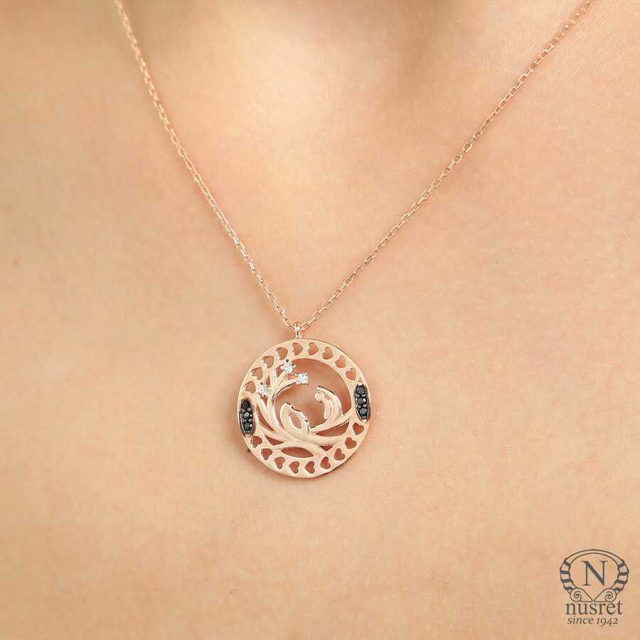 925 Ayar Gümüştür. Madalyon Boyutu: 2,2 cm'e, 1,8 cm'dir. Zincir Boyu: 42 cm'dir. Taşları beyaz siyah zirkondur. Gramı: 2,52