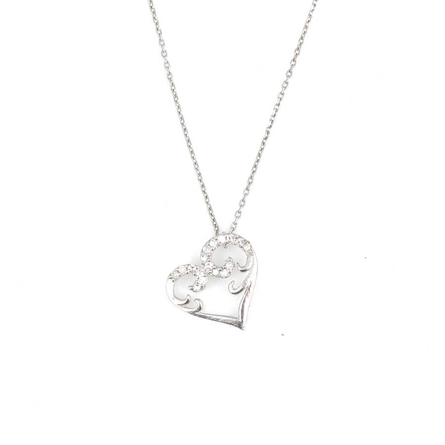 Gümüş kolye 925 ayar gümüşten yapılmıştır. Kalp kolye 1,4 cm'ye 1,1 cm boyutlarındadır. Zinciri 41 cm uzunluğundadır. Kolyenin taşları zirkondur. Ağırlığı 1,8 gramdır.