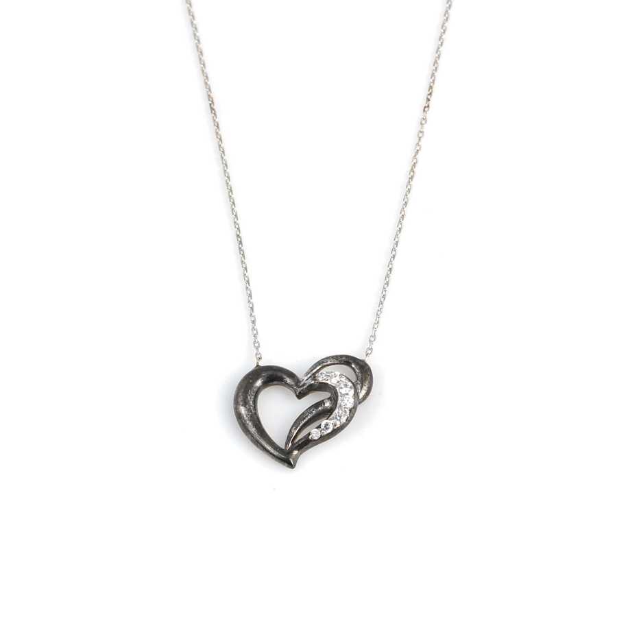 Gelince Haber Ver Modern ve romantik detayları bir araya getiren bu özel tasarım 925 ayar gümüş kalp kolye, siyah oksit görünümlü kalp formu ile dikkat çeker. Kalbin iç kısmında yer alan beyaz taş detayları tasarıma sıcak ve sofistike bir ışıltı kazandırır.
