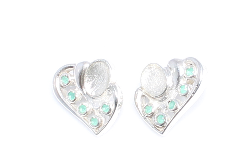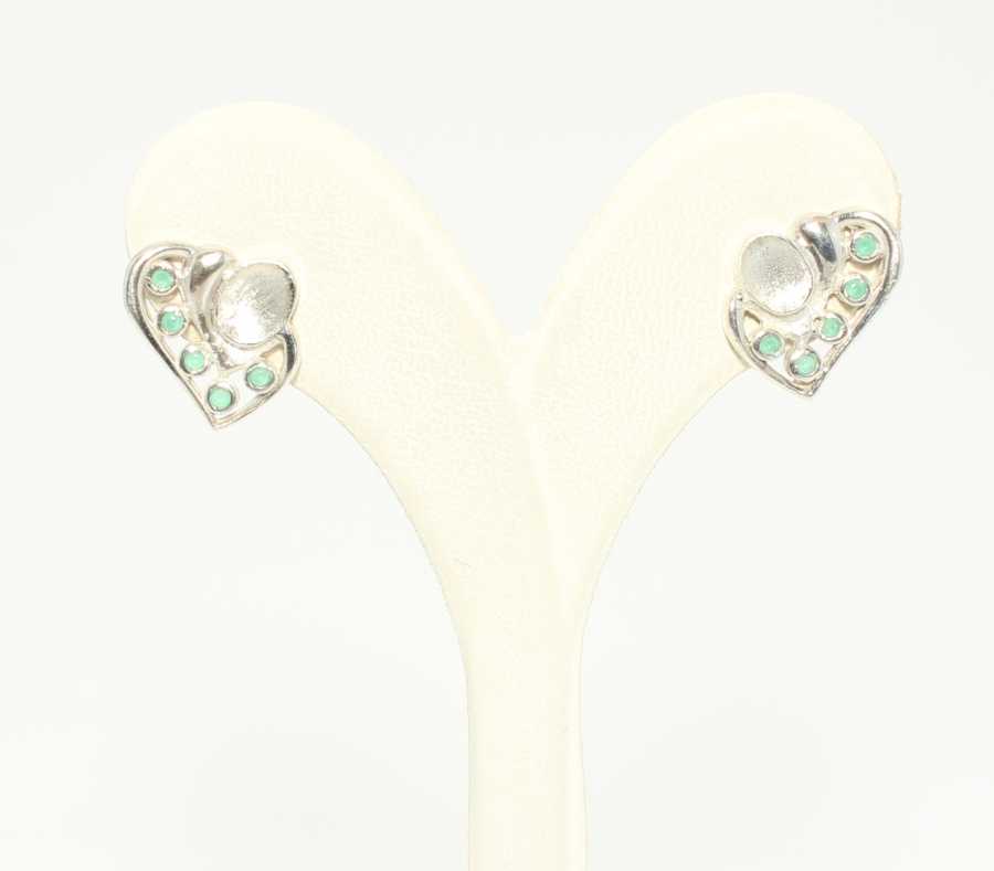 925 Silver Heart Design Stud Earrings with Green Stones