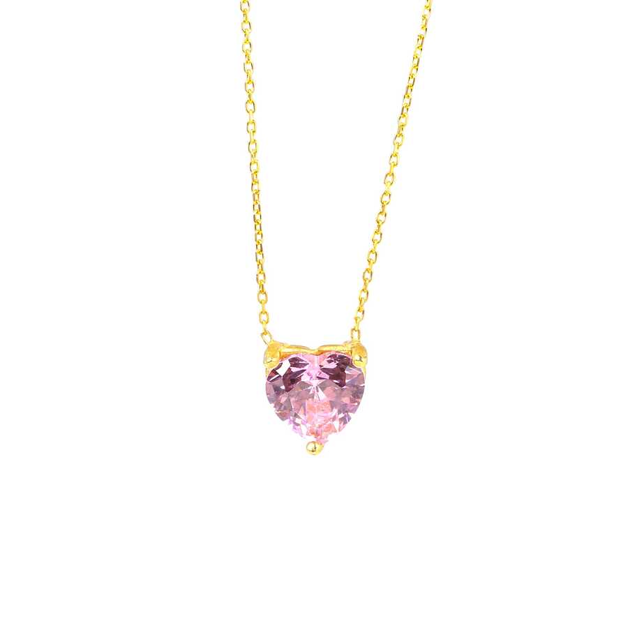 925 Ayar Gümüş Kalp Pembe Kuvars Taşlı Kolye