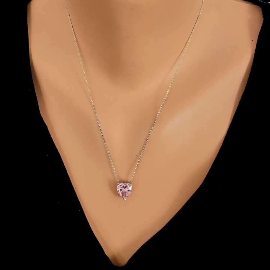 Gümüş kolye 925 ayar gümüşten yapılmıştır. Kalp şeklindeki kolye 1,2 cm'ye 1,0 cm boyutlarındadır. Zinciri 45 cm uzunluğundadır. Kolye pembe kuvars renk taşlıdır. Ağırlığı 3,11 gramdır.