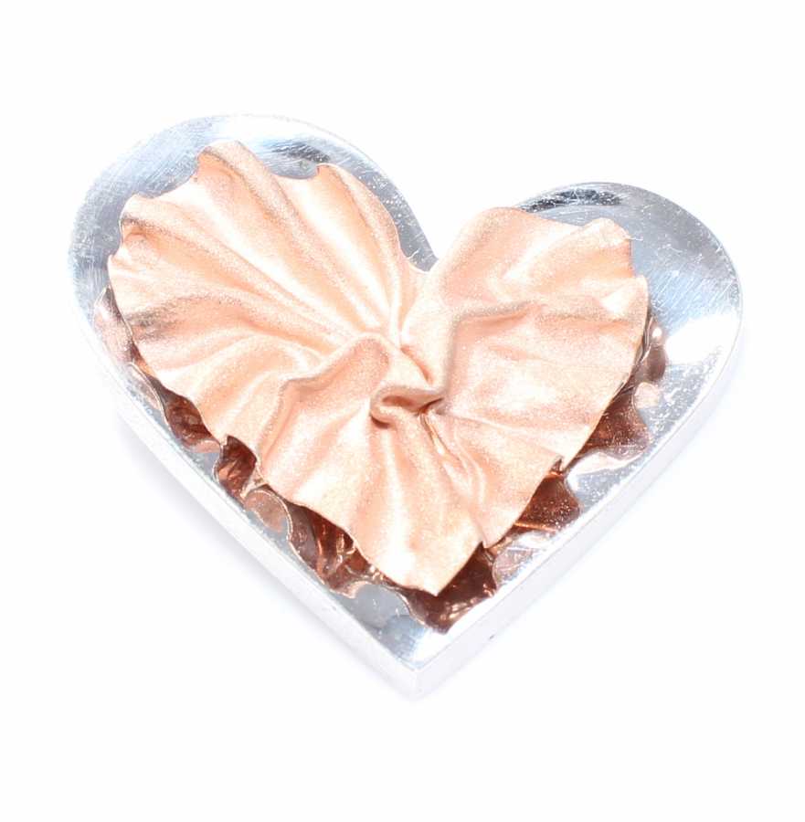 925 Ayar Gümüş 5,0 x 5,0 cm roz renk kalp kırışık model kolye ucu Gramı: 19,59 gr