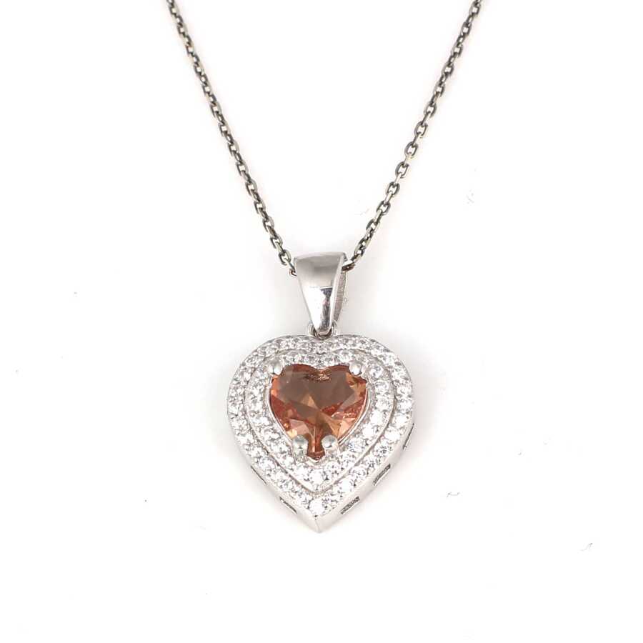 Gümüş kolye 925 ayar gümüşten yapılmıştır. Kalp çift sıra anturaj model kolye 2,4 cm'ye 1,5 cm boyutlarındadır. Zultanit taşı 8 cm'ye 8 cm boyutlarındadır. Gümüş kolye 45 cm uzunluğundadır. Kolye beyaz zirkon ve zultanit taşlıdır. Ağırlığı 4,17 gramdır.