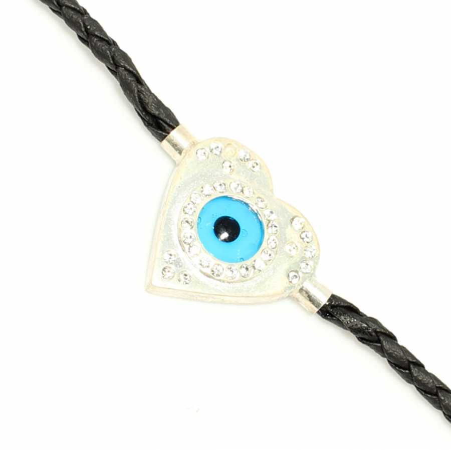 925 Ayar Gümüş Kalp Nazar Boncuklu Deri İpli Bileklik